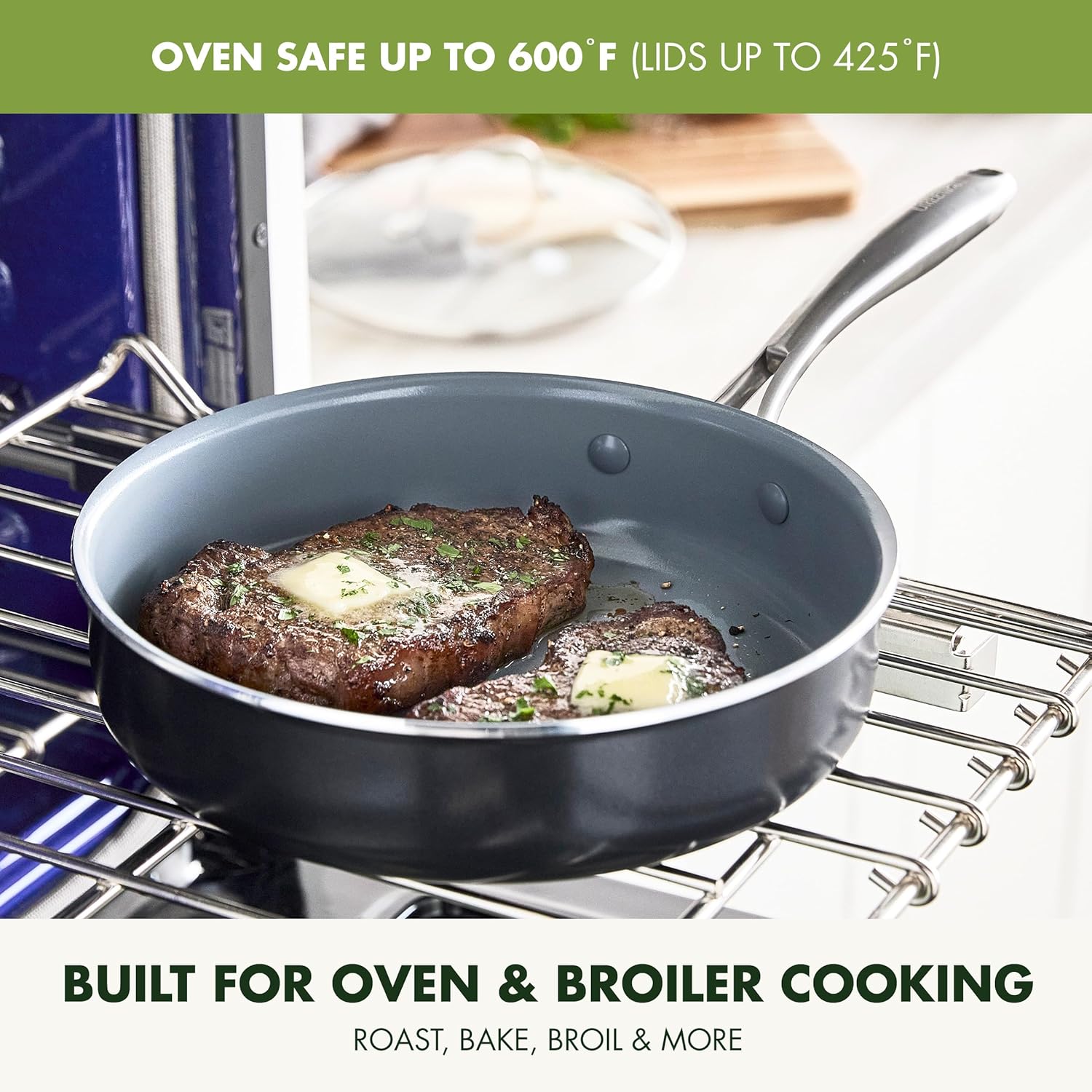 - BUILT FOR OVEN COOKING: Oven and broiler safe up to 600°F and suitable for all stovetops, except induction