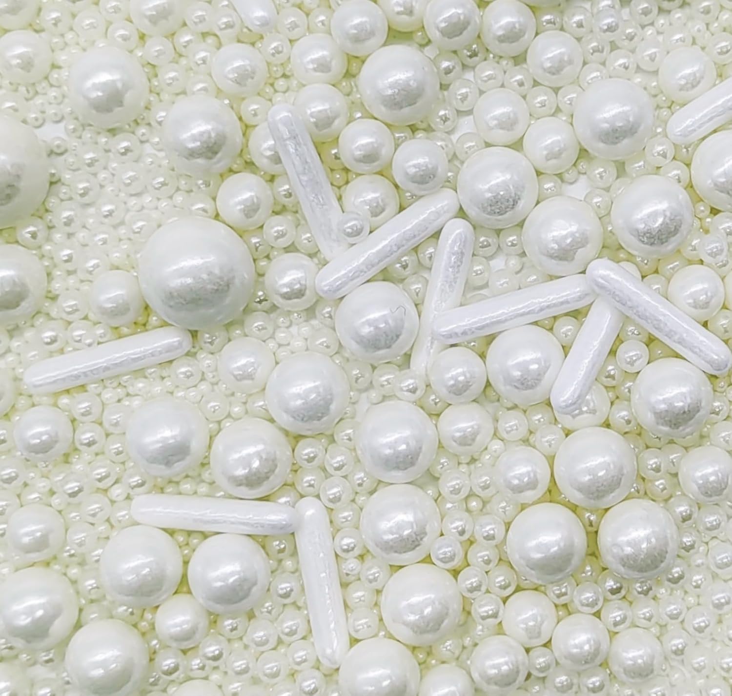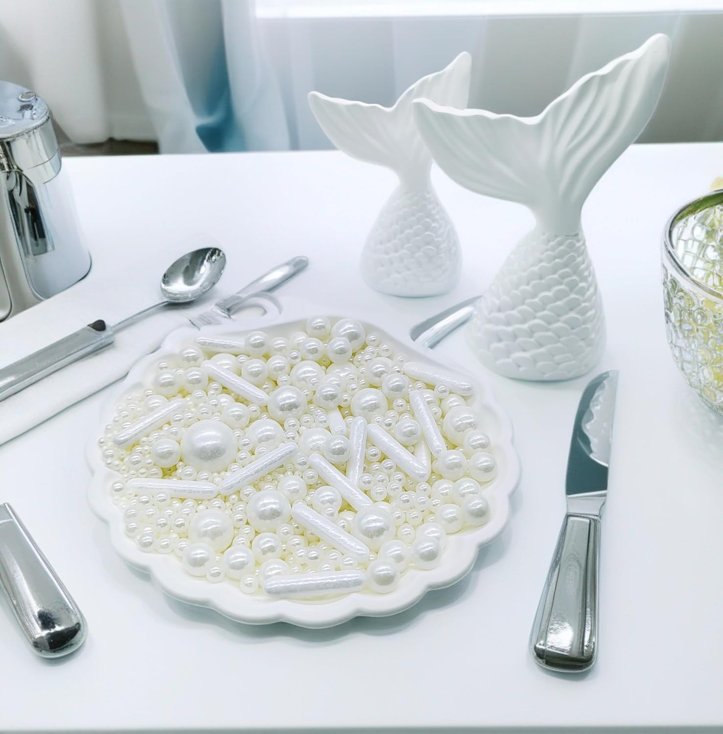 White Sprinkles Candy Mix Size Edible Pearls Cake Decorations Cupcake Toppers Cookie Decorating Perfect for Wedding Party Valentine Halloween Christmas Supplies 4.58OZ