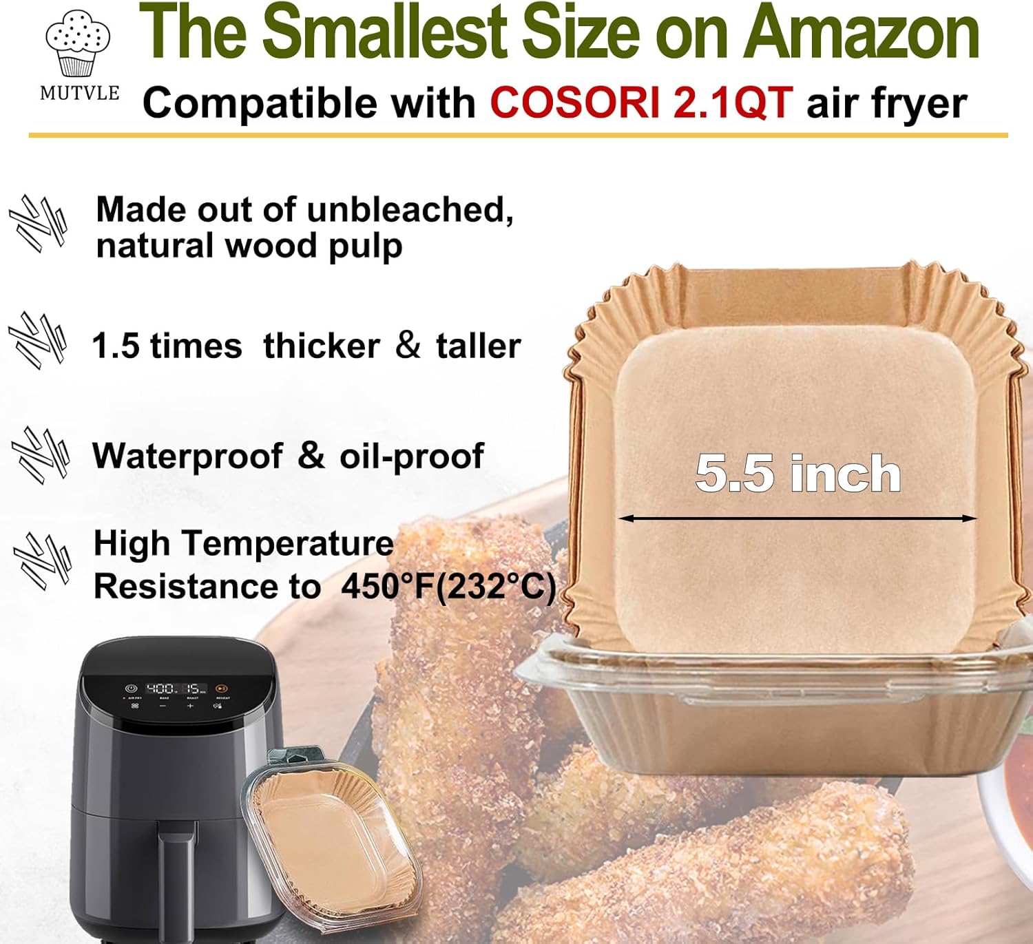 Small Air Fryer Liners for Cosori 2.1qt Air Fryer, Mini Air Fryer Liners Disposable 2 2.1 2.6 3QT, 5.5 Inch Air Fryer Liners
