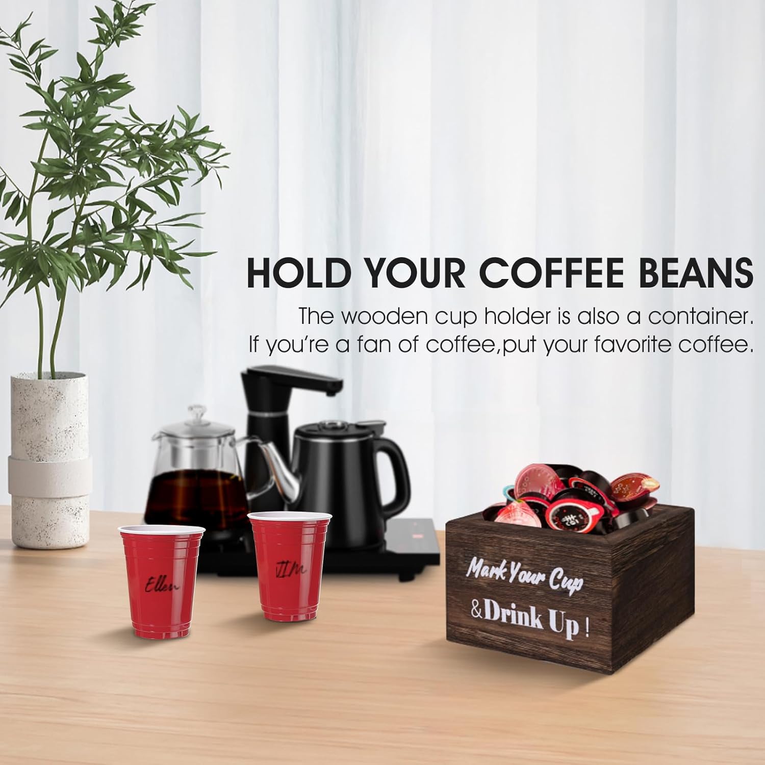 - 【Sturdy and Durable Cup Holder】This wooden cup holder is made of 100% solid wood and upgraded thickened wood to ensure that it is sturdy and durable.This wooden cup holder is sure to serve you for many long years. This party cup holder will provide guests with a designated place to store cups, and keep markers at any time!