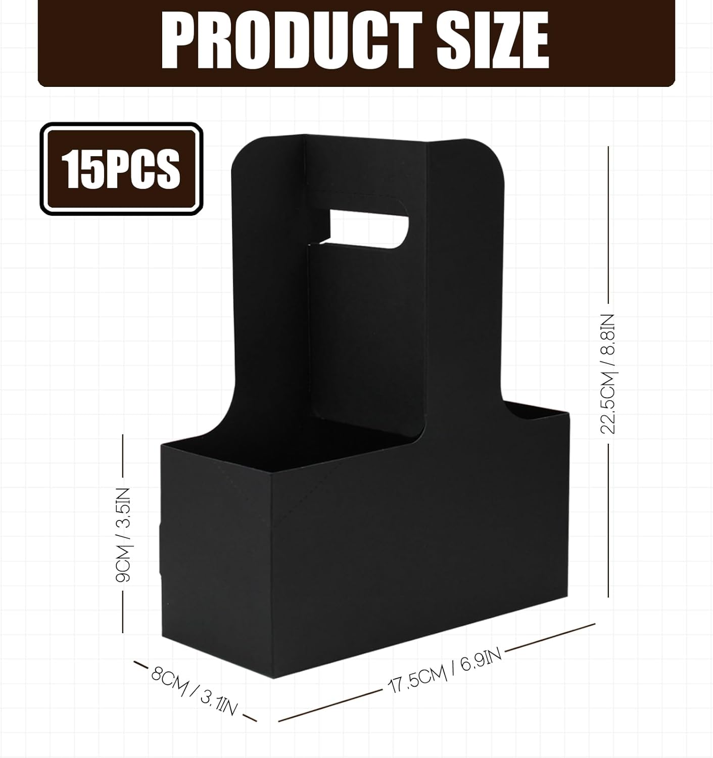 2 Cup Disposable Drink Carrier for Delivery with Handle,15 Count Black Paperboard Cup Holder,Cup Carriers for Hot or Cold Drinks,Coffee Carrier, Food Delivery,Take Out Cup Carriers (Black, 15 PCs)