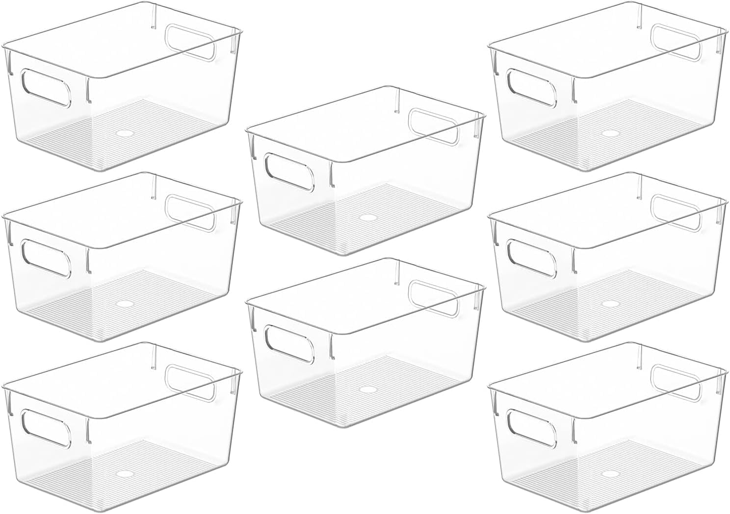 Clear Plastic Storage Bins, Pantry Organizers and Storage Containers Fridge Organizer Bins for Organizing Kitchen Cabinet Organizer Bin Bathroom Freezer Refrigerator Organization