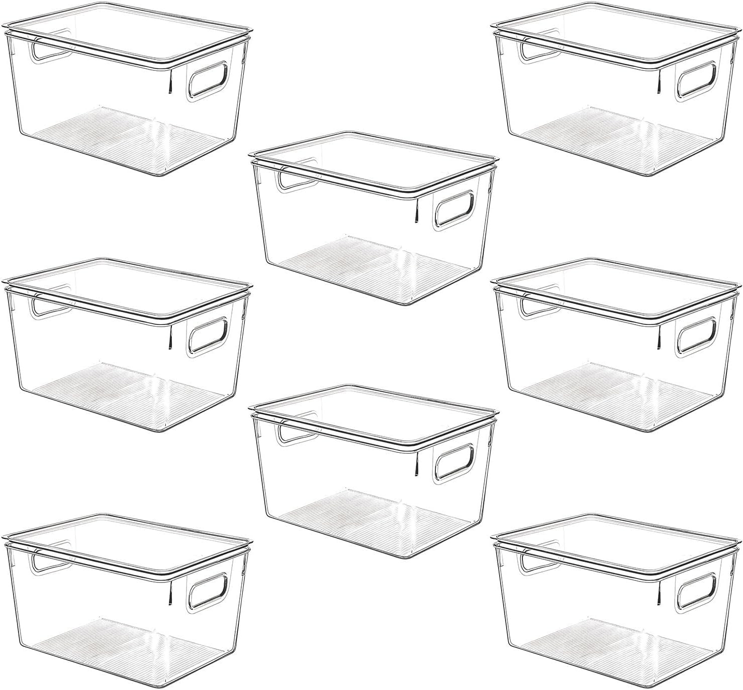 - YOU WON'T FIND A MORE VERSATILE SET OF BINS: You can use these large clear plastic storage containers with lids for organizing any space in and around your home โ the kitchen, cabinets, refrigerator, closets, pantries, bedroom, dining room, laundry room, nursery, garage, kids toy room, under sink organizers and more.