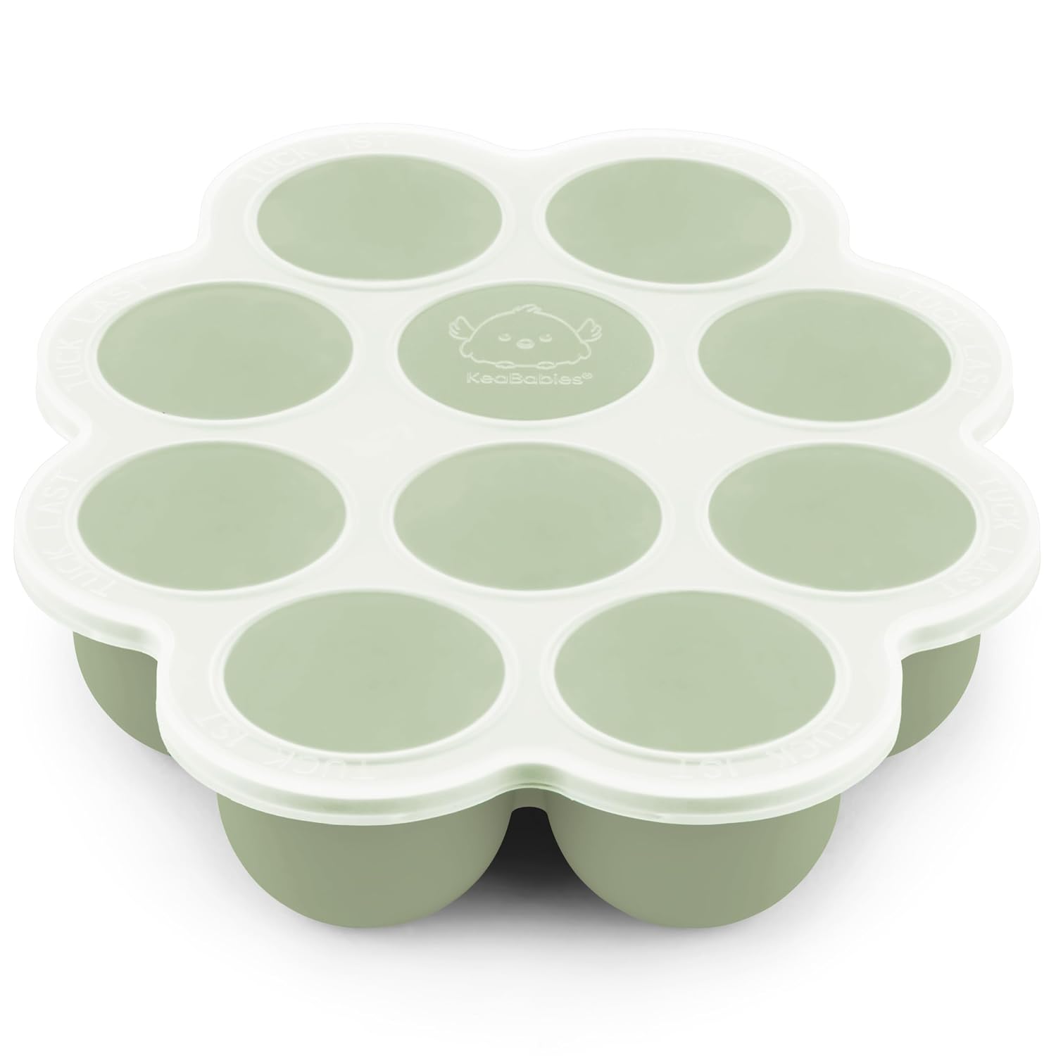 KeaBabies Silicone Food Freezer Trays with Lid, 2oz x 10 Pods Baby Food Storage Containers, Easy Puree Meal Prep, Breast Milk Silicone Freezer Molds, Dishwasher, Microwave Safe, BPA-Free (Sage)