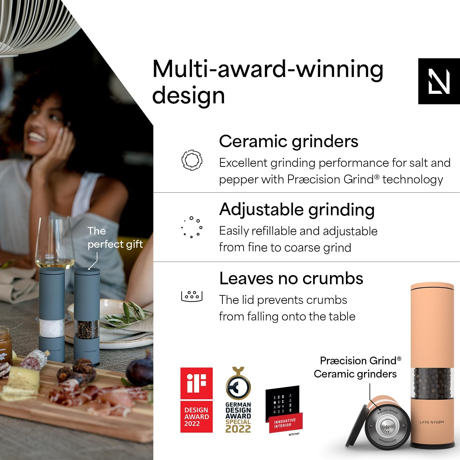 LARS NYSØM Salt and Pepper Grinder Set Manual, Stainless Steel Salt and Pepper Mills with Adjustable Ceramic Grinder I Design Spice Shakers (Creamy Peach)
