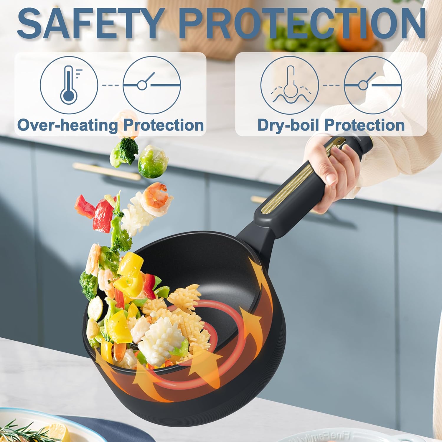 - 【Portable Pot for Cooking】 This portable pot is moderately sized, making it especially convenient to use and carry, and it is also a dorm room essential. Additionally, it is suitable for use in small kitchens, single apartments, offices, and camping, where space is limited, and it is easy to store. It is also suitable for people who enjoy van life cooking. With simple operation, this multi-use electric pot can replace various common kitchen gadgets, allowing you to cook delicious meals even on a busy day.
