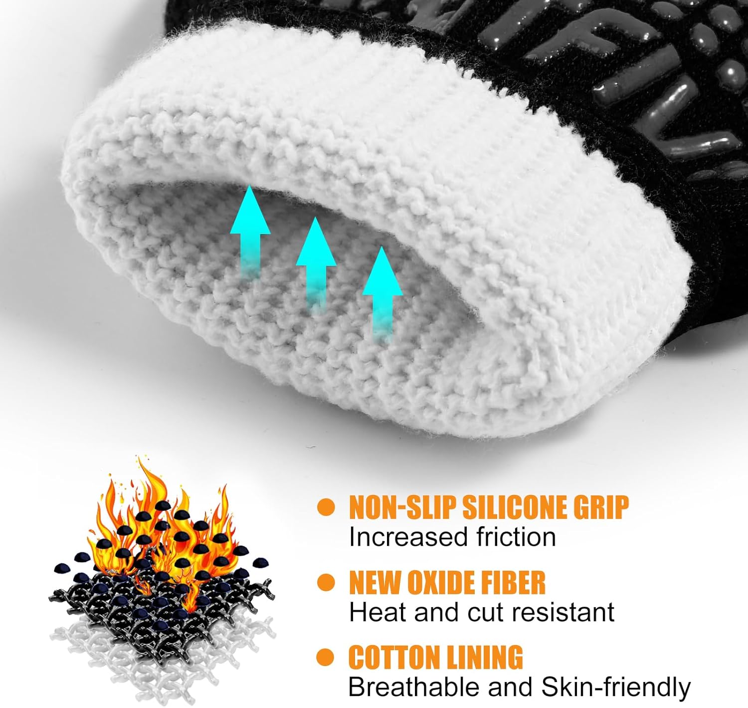 BBQ Gloves, Oven Gloves, 1472°F Extreme Heat Resistant Barbecue Gloves, Silicone Non-Slip Oven Mitts, Kitchen for Cooking, Grilling, and Baking (Black)