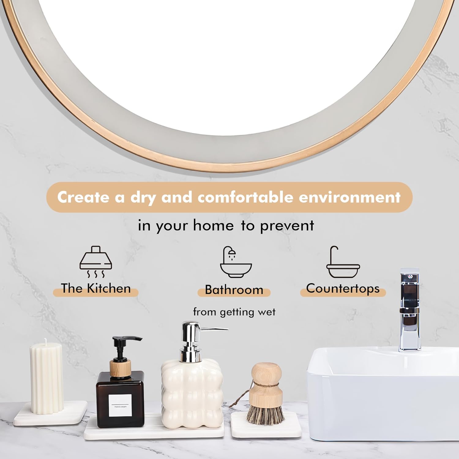 - 【Wide Range of Applications】This product is suitable for bathroom, kitchen and other scenes. In the bathroom it can be suitable for soap/water cups/soap bottles/dishwashing sponges/make-up bottles absorbent pads; Use our absorbent stone trays in the kitchen sink to keep the sink neat and tidy, ideal for placing soaps and sponges.