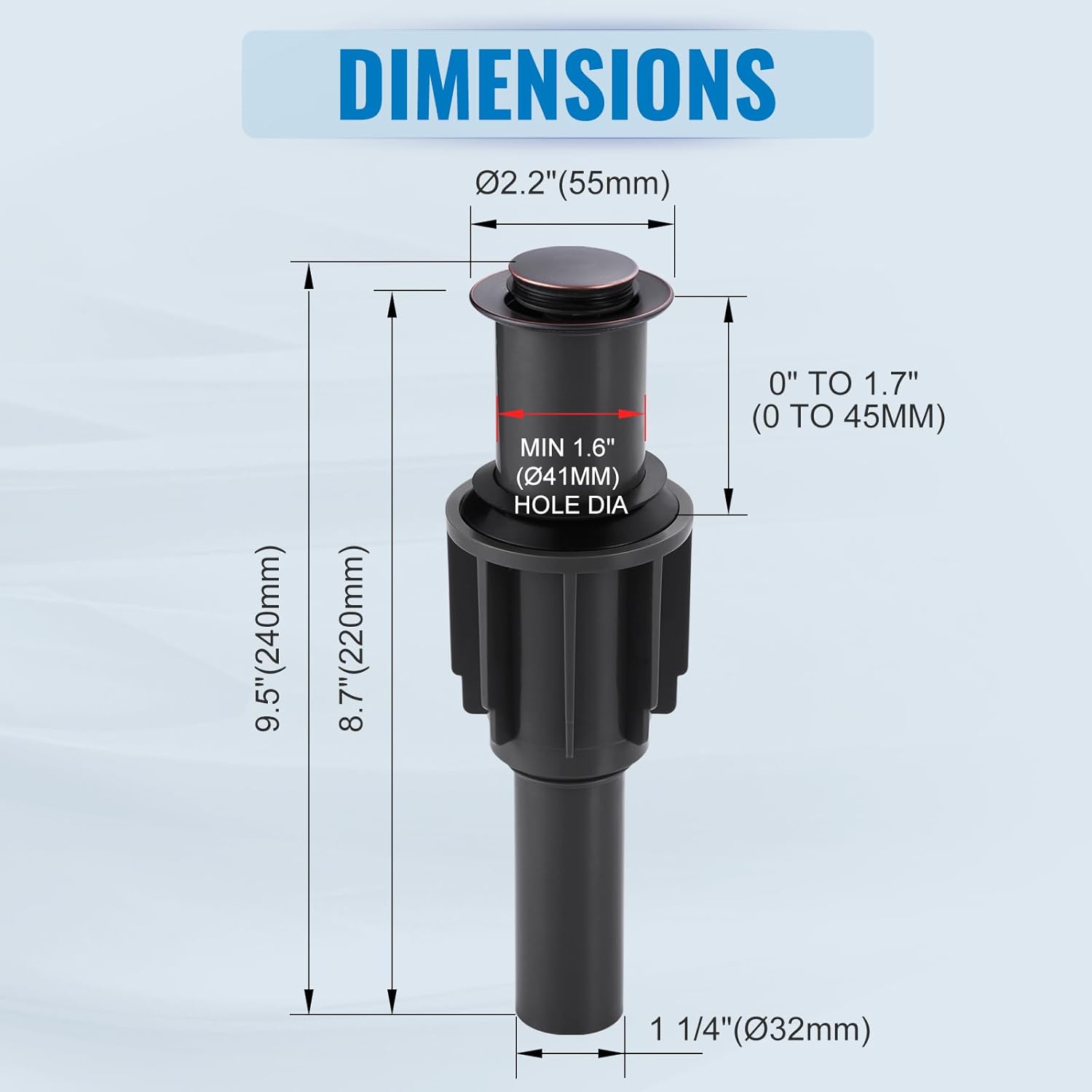- 【Premium Pop Up Drain】- The Bathroom Sink Drain is made of premium ABS material with flexible silicone gaskets, the exquisite matte black finish can resist daily scratches, corrosion and discoloration.