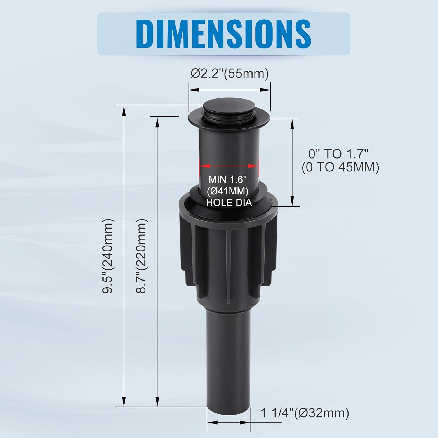 - 【Premium Pop Up Drain】- The Bathroom Sink Drain is made of premium ABS material with flexible silicone gaskets, the exquisite matte black finish can resist daily scratches, corrosion and discoloration.
