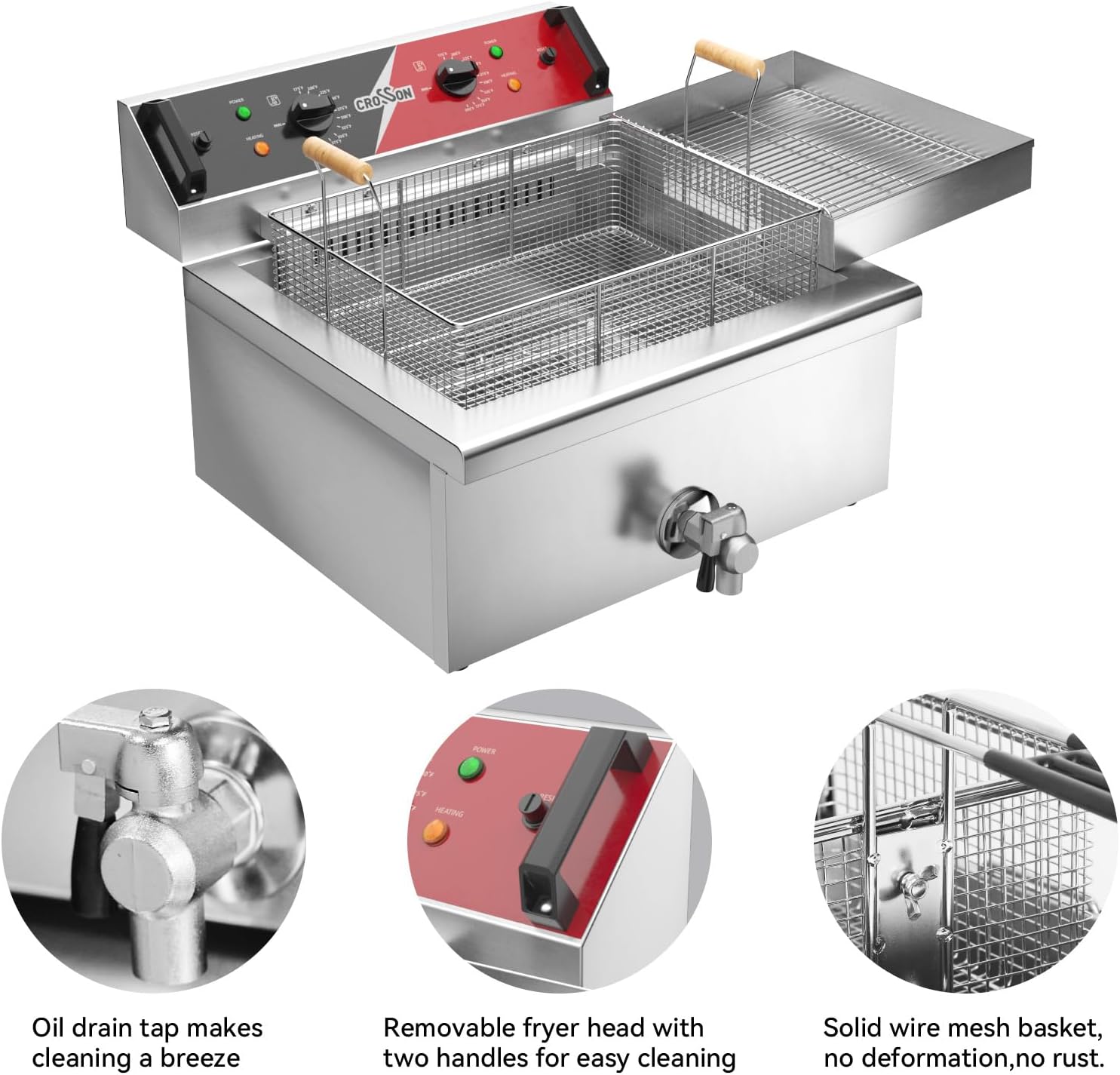 CROSSON 24Lbs Electirc Triple Basket Turkey Fryer With Oil Drain Spout,Oil Drain Rack,Commercial Countertop Donut Deep Fryer To Fry a Whole Fish or Turkey