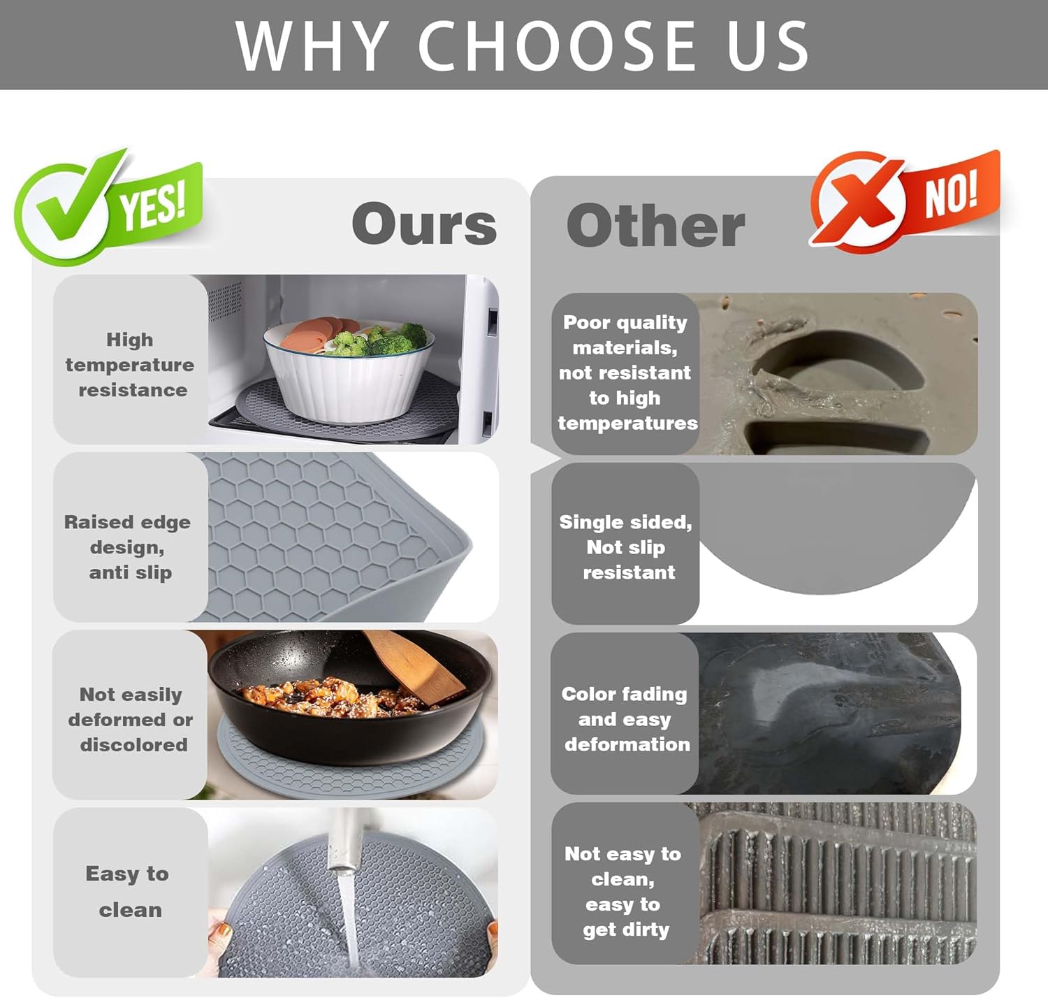 To encounter Silicone Microwave Mat - Round 12" x 12" - Set of 4 Heat Resistant Multifunctional Mat, Splatter Guard, Trivet, Hot Pad, Pot Holder