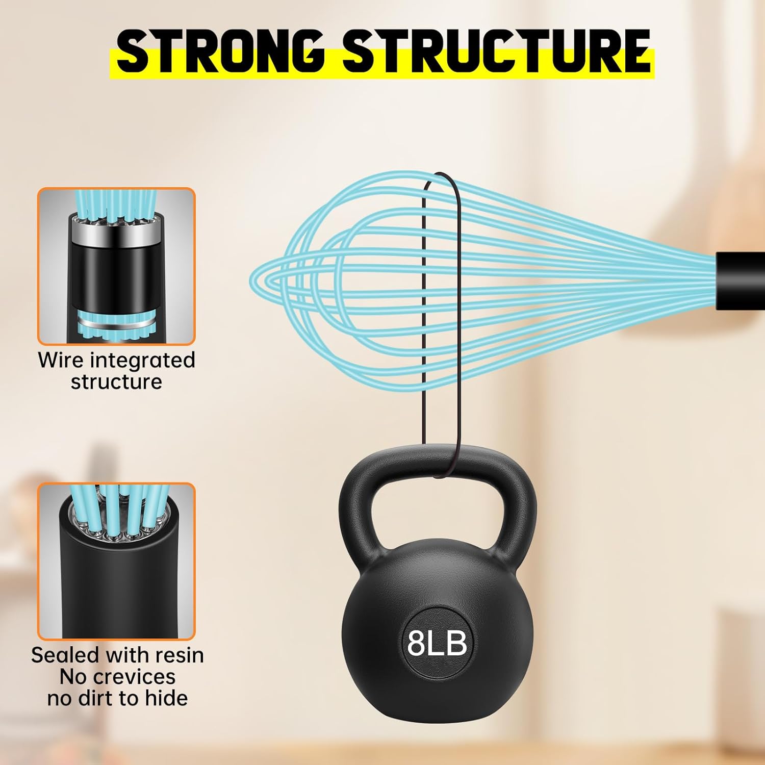 - 484ยบF High Heat-Resistant: Feature BPA free silicone wires. 1.65mm thickened wires coated in 0.3mm soft silicone makes it stronger and more durable. Great for stirring sauces and gravies while heating.