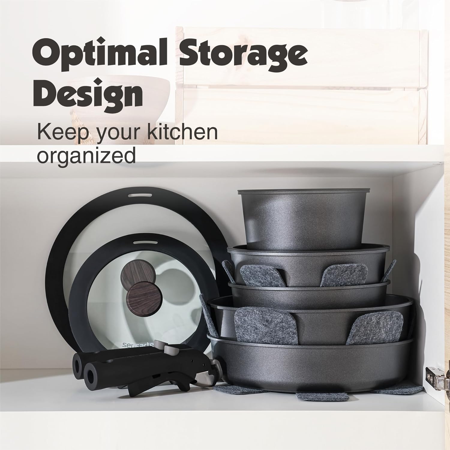 - Easy Storage - Save up to 70% more space with stackable pots and pans set and detachable handles, allowing for storage in cabinets or RVs.