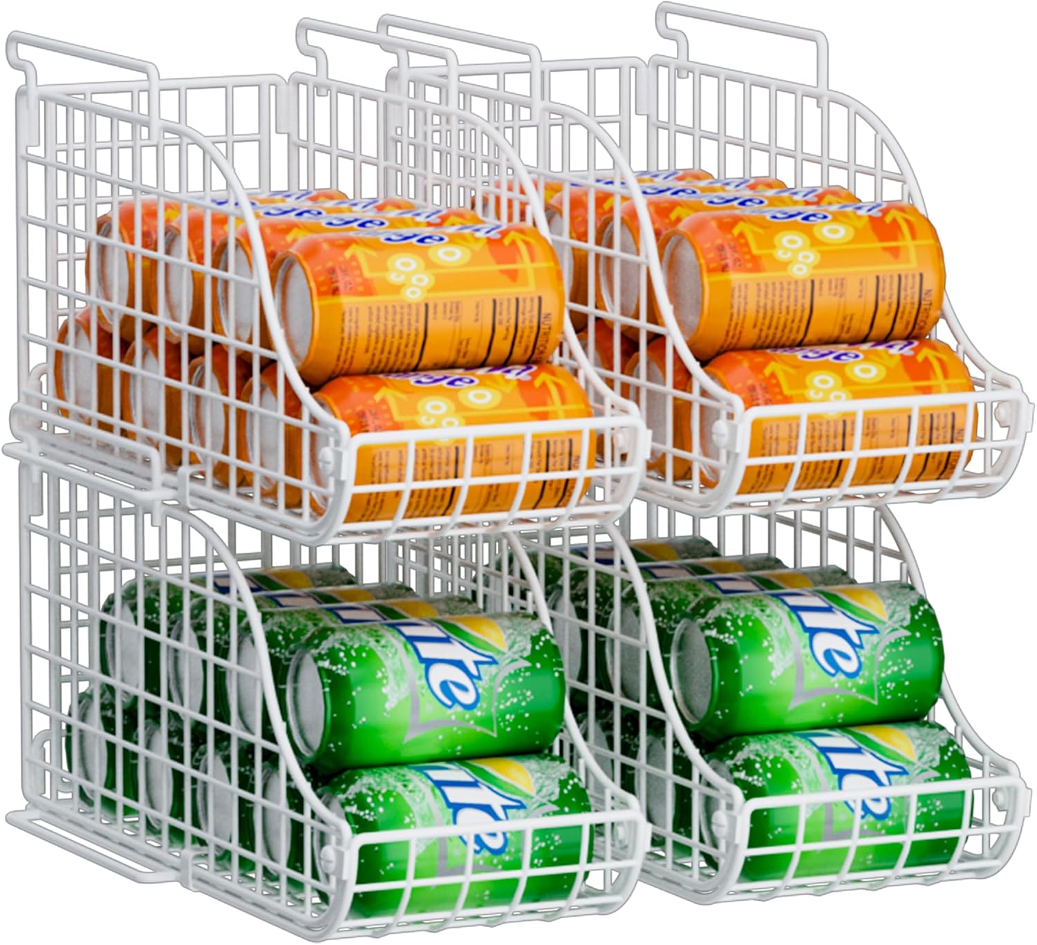 Can Storage Organizer Pantry, Stackable Kitchen Canned Food Holder With Handles, Can Organizer For Pantry Countertop Cabinet, Beverage Drink Pop Soda Can Dispenser Patent Pending (White, 4 Pack)