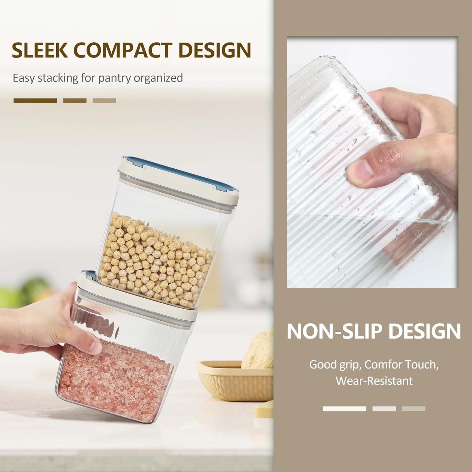 - Elegant Design Durable- With a sleek lines and contrast color scheme, whether displayed on your countertops or tucked away in pantry, these canisters are sure to enhance the aesthetic of your kitchen and impress your guests. Anti-slip vertical striped surface ensure good grip and better scratch resist