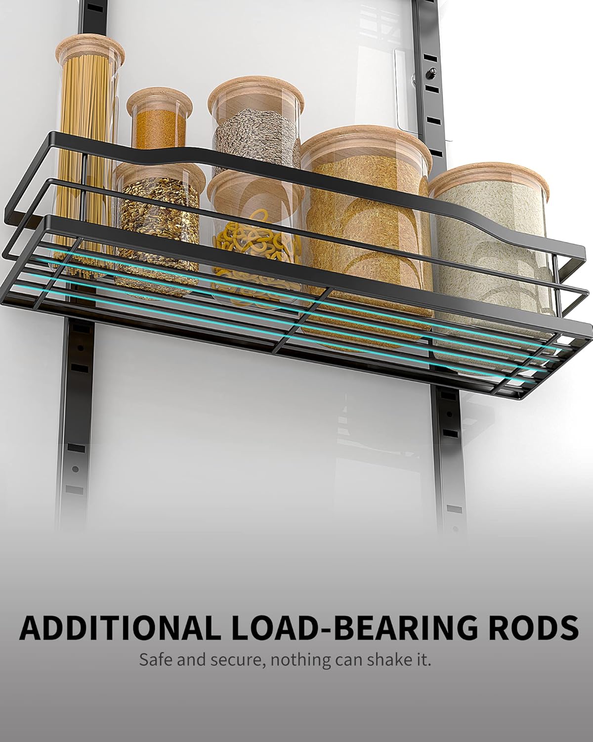 - Maximize Your Space: Please measure the width of your door before purchasing to see if it can fit a 12.2"W shelf. Our 9-Tier over the door pantry organizer is designed to make the most of your storage space, allowing you to store more items in a smaller area such as spice and some jars. Perfect for small kitchens or those with limited storage space.