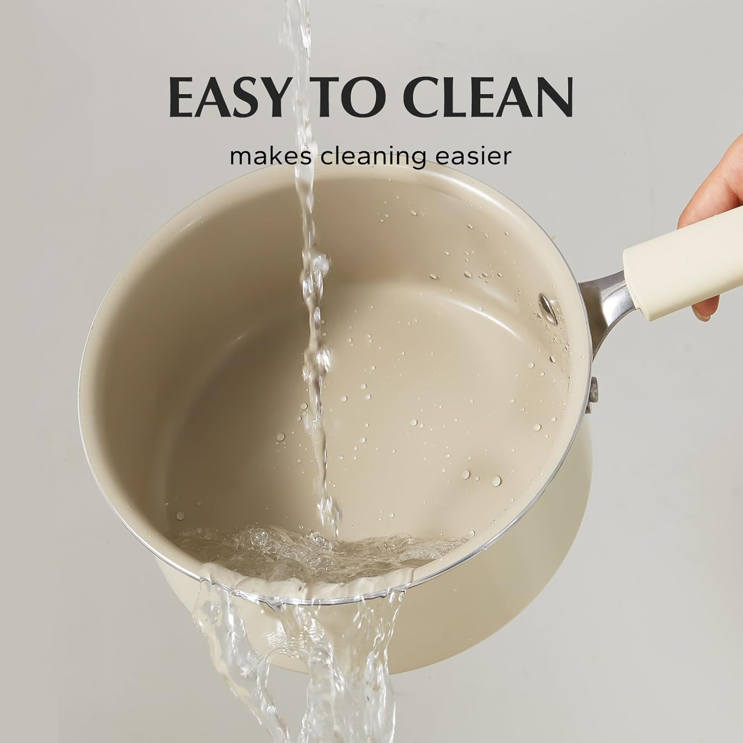 - Ceramic Coating: Our small pots for cooking feature a ceramic coating that is safety. This non-stick coating ensures food doesnโt easily stick to the bottom, making them ideal for cooking pasta, sauces, oatmeal, and more. These ceramic nonstick sauce pan are a reliable kitchen companion for a variety of dishes