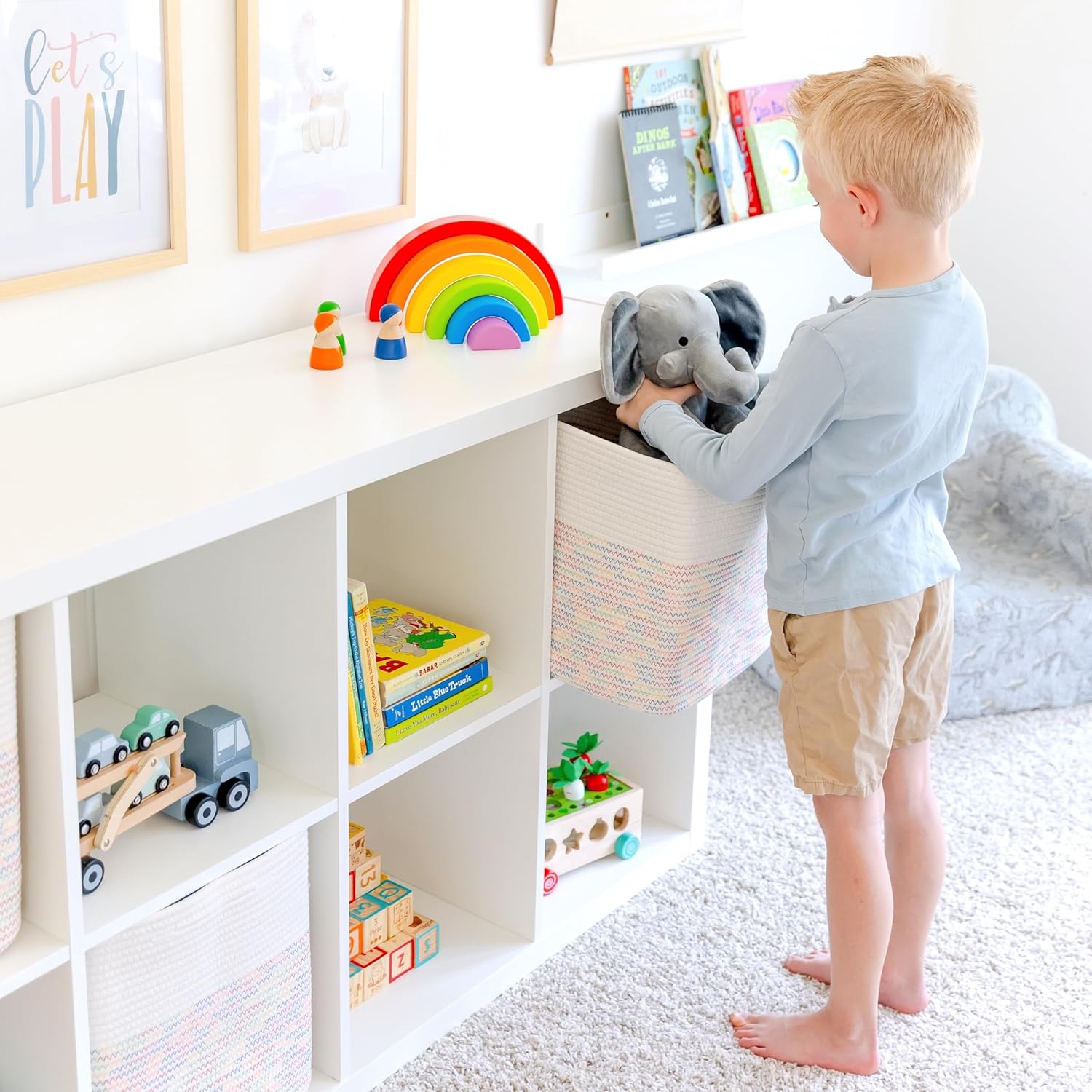 - Safe, Natural Cotton Storage Basket: Crafted from the highest quality material in the market, our toy bins are oh-so-sturdy and ready to take on little humans with a knack for nom-ing. They’re 100% safe, so you can rest easy if teething toddlers take a nibble.
