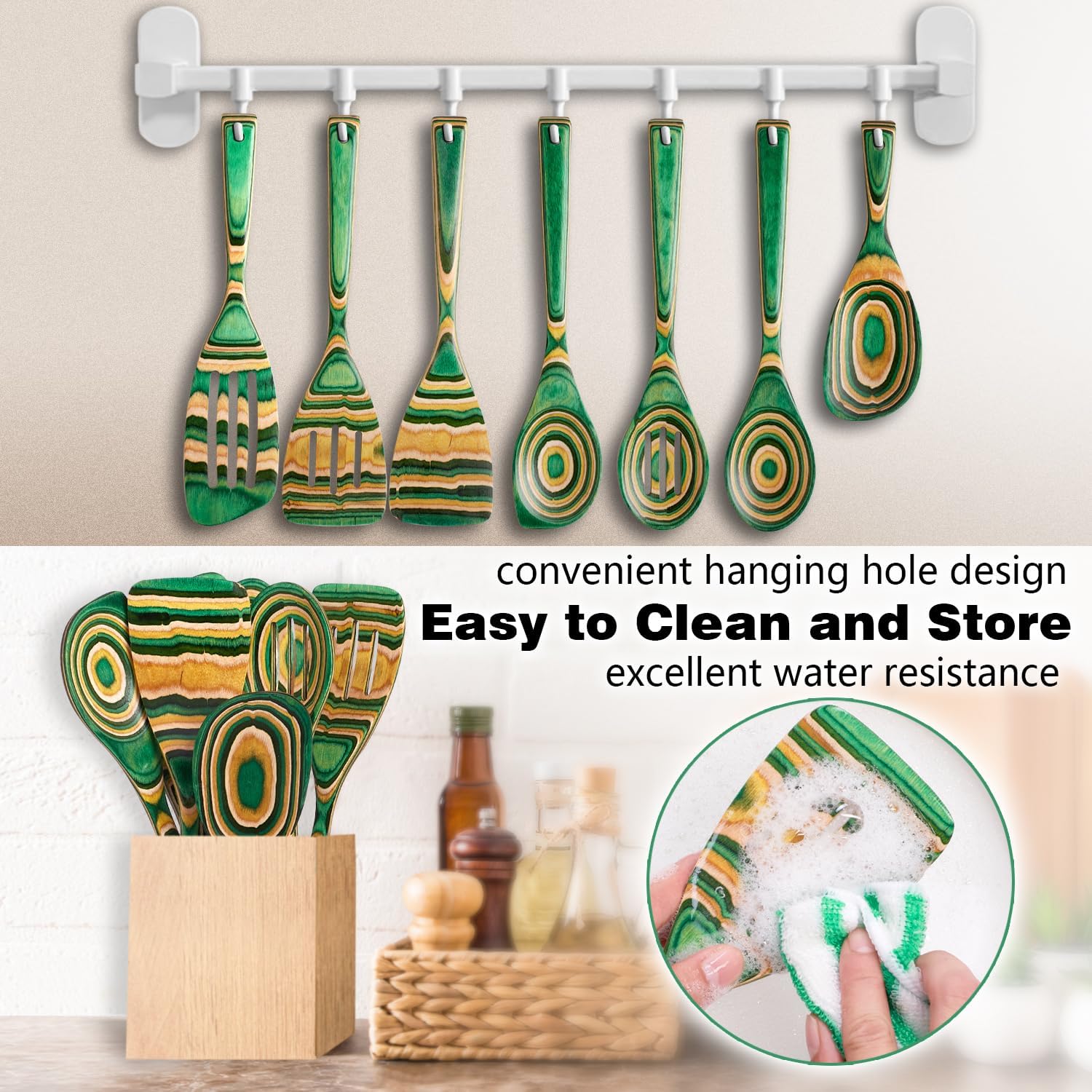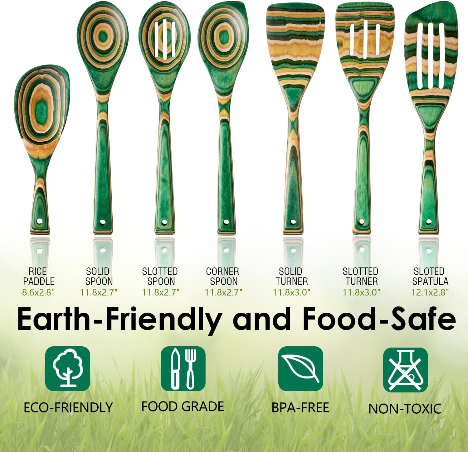 - UNIQUE OASIS DESIGN: Pakkawood utensils feature a refreshing green Oasis pattern, blending style and durability for everyday cooking and serving tasks.