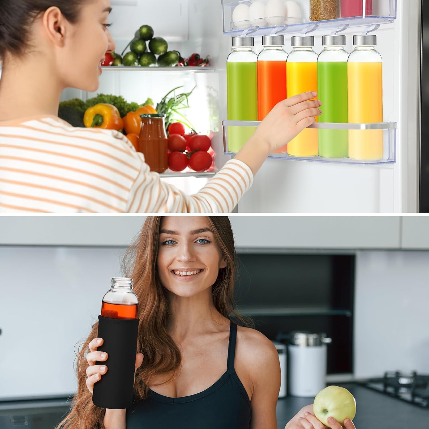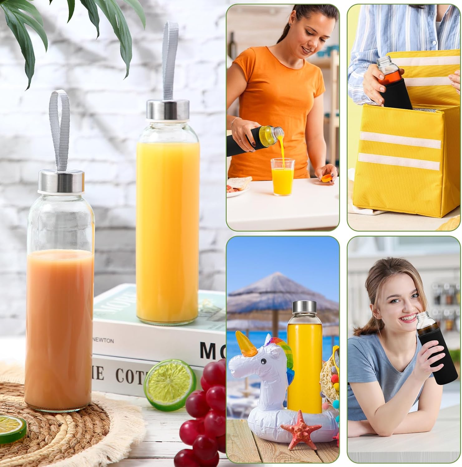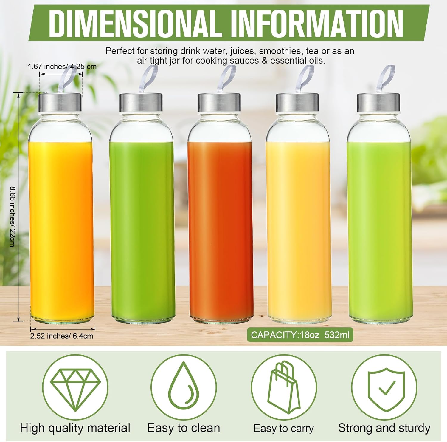 - Multipurpose Use: our 18oz glass juice bottles with sleeves and stainless steel lids are versatile for various applications, from storing hot or cold drinks, still or carbonated drinks, leftover drinks to crafting sand art crafts, this bottle is a good fit for all