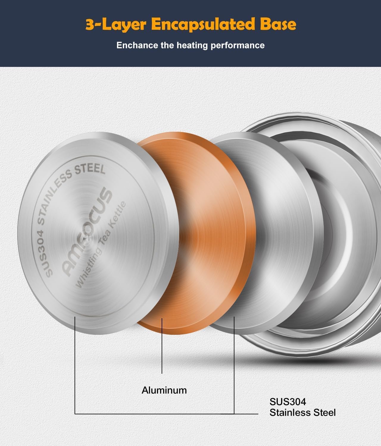 - ✔Loud Whistling Teapot: Our whistling tea kettle have loud & automatic vivid whistles, which will catch your attention when you focus on housework,movies,cooking in next door. It prevents you from forgetting to turn off the stovetop that causing water to be boiled dry or over-boiling.(NOTE: Pls keep the water level is below the spout of the kettle to ensure that the whistle is working properly.)