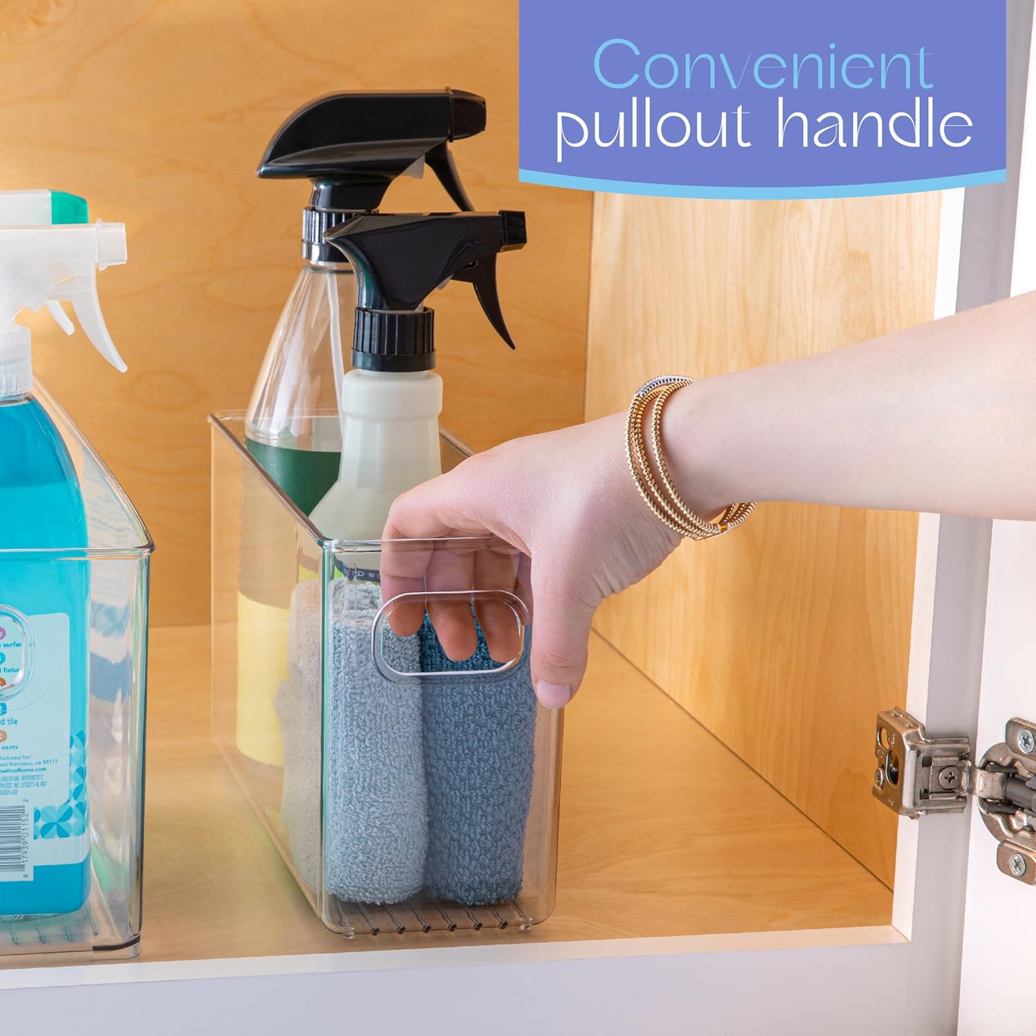 Plastic Food Storage 2 Pack Clear Container Bin with Handles for Organizing Kitchen, Pantry, Refrigerator, Freezer, Pantry, Cabinet, Closet, Bathroom. 10”x4”x6”