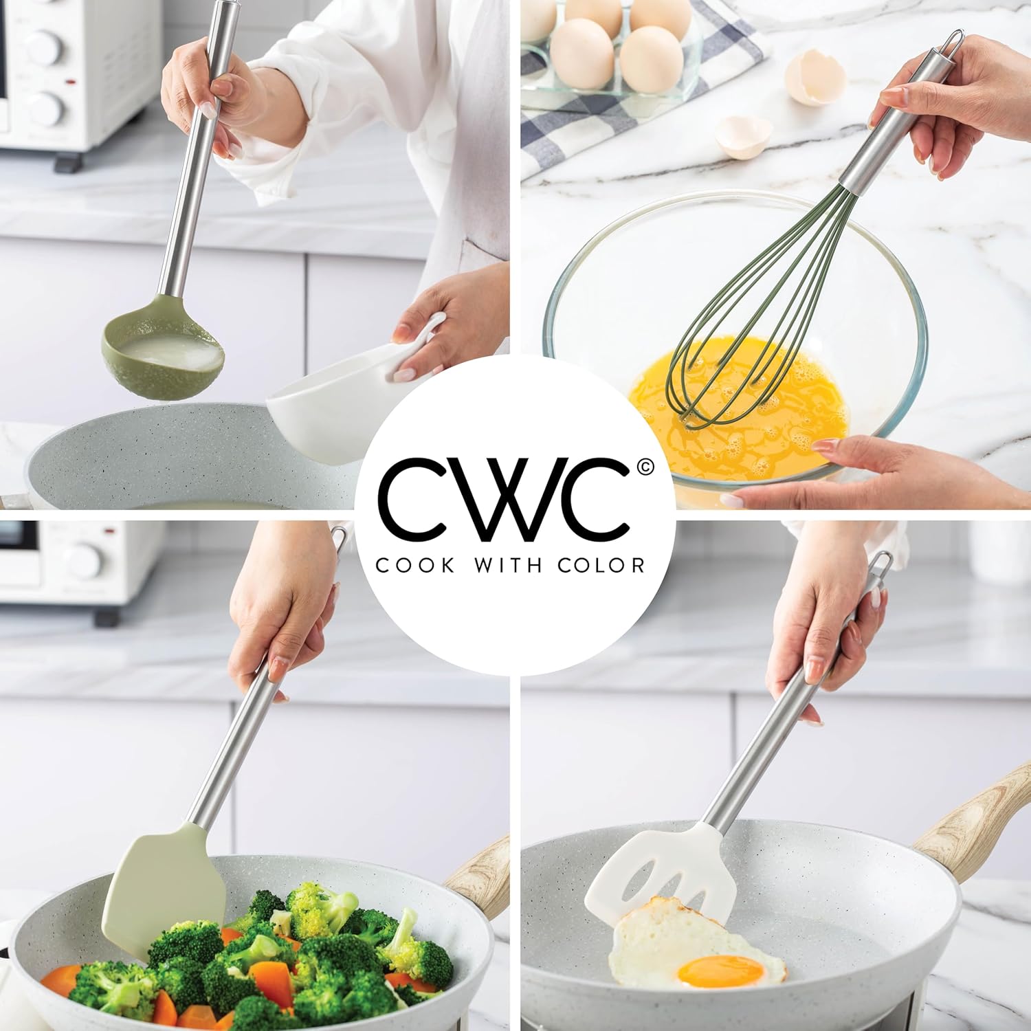 COOK WITH COLOR Silicone Cooking Utensils, Kitchen Utensil Set, Easy to Clean Silicone Kitchen Utensils, Cooking Utensils for Nonstick Cookware, Kitchen Gadgets Set, 38 Piece, Green