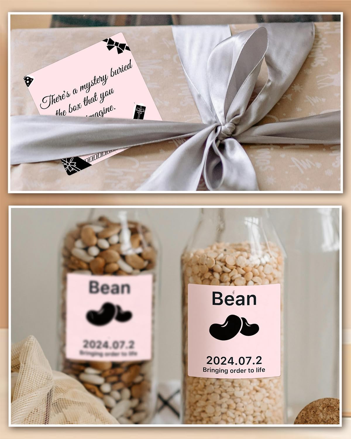 - Water & Oil Resistant: The thermal label sticker is made of high quality materials, make it has water and oil resistant surface. Perfect for office supplies, home decor, name tag, boxes, containers, gifts, price tag, daycare, etc