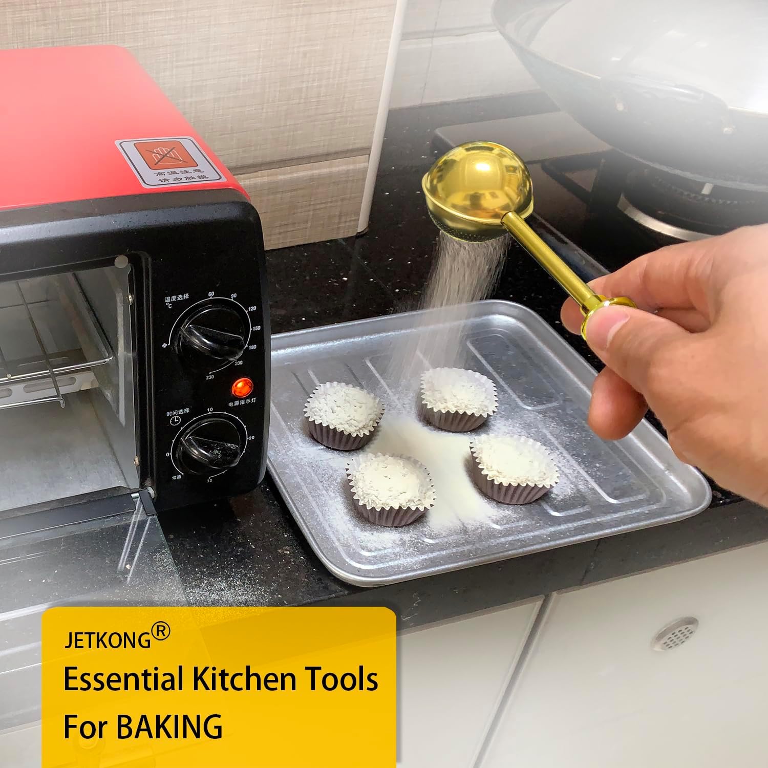JETKONG Baker's Dusting Wand for Sugar, Flour and Spices, Stainless Steel Powdered Sugar Shaker Duster Sifter, Set of 2 (Gold)