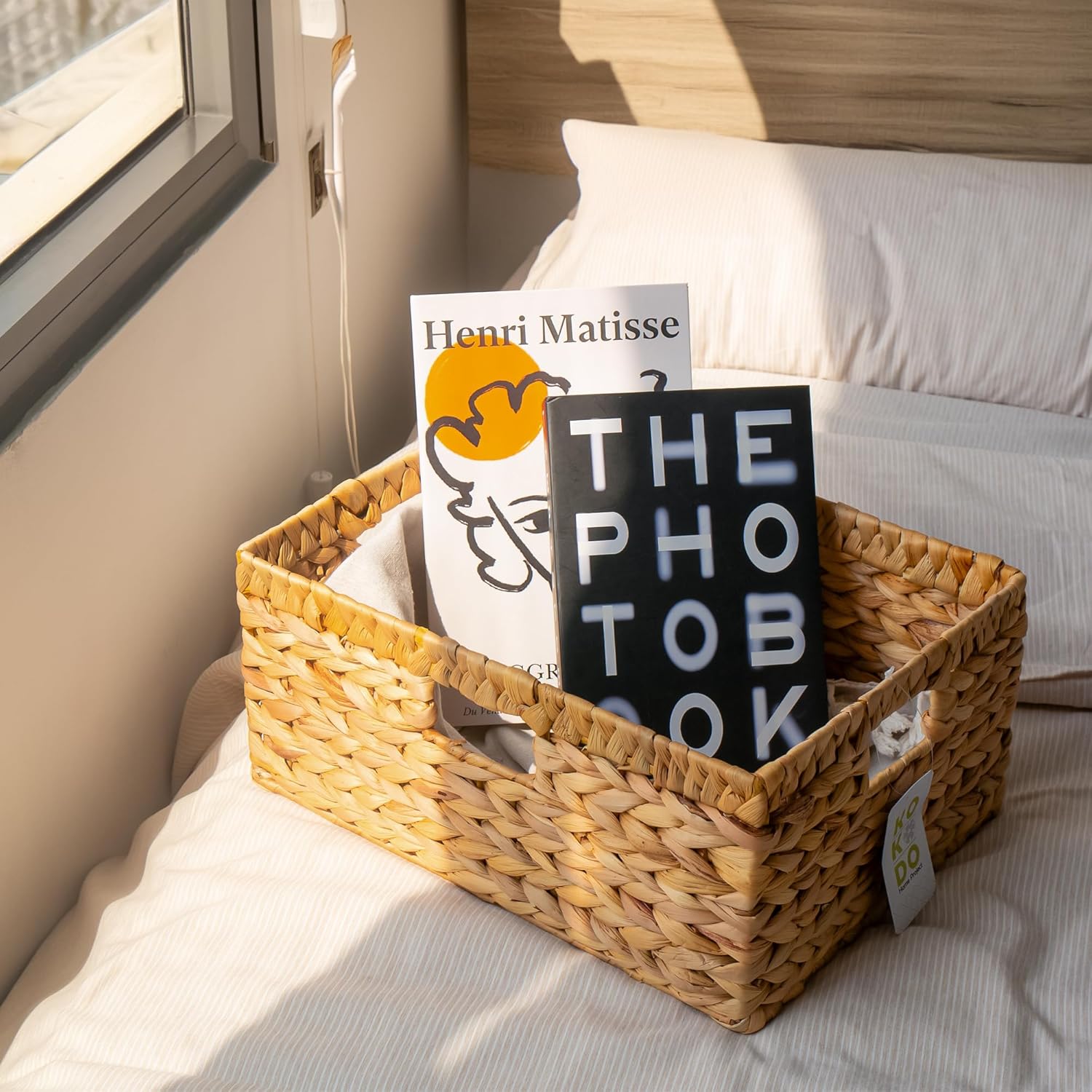 - šæ[Sturdy Design] Meticulously handwoven water hyacinth over an iron frame ensures durability and stability for long-term while selected matual water hyacinth material provide a unique and natural look. This rectangular wicker basket ensures long-lasting use.