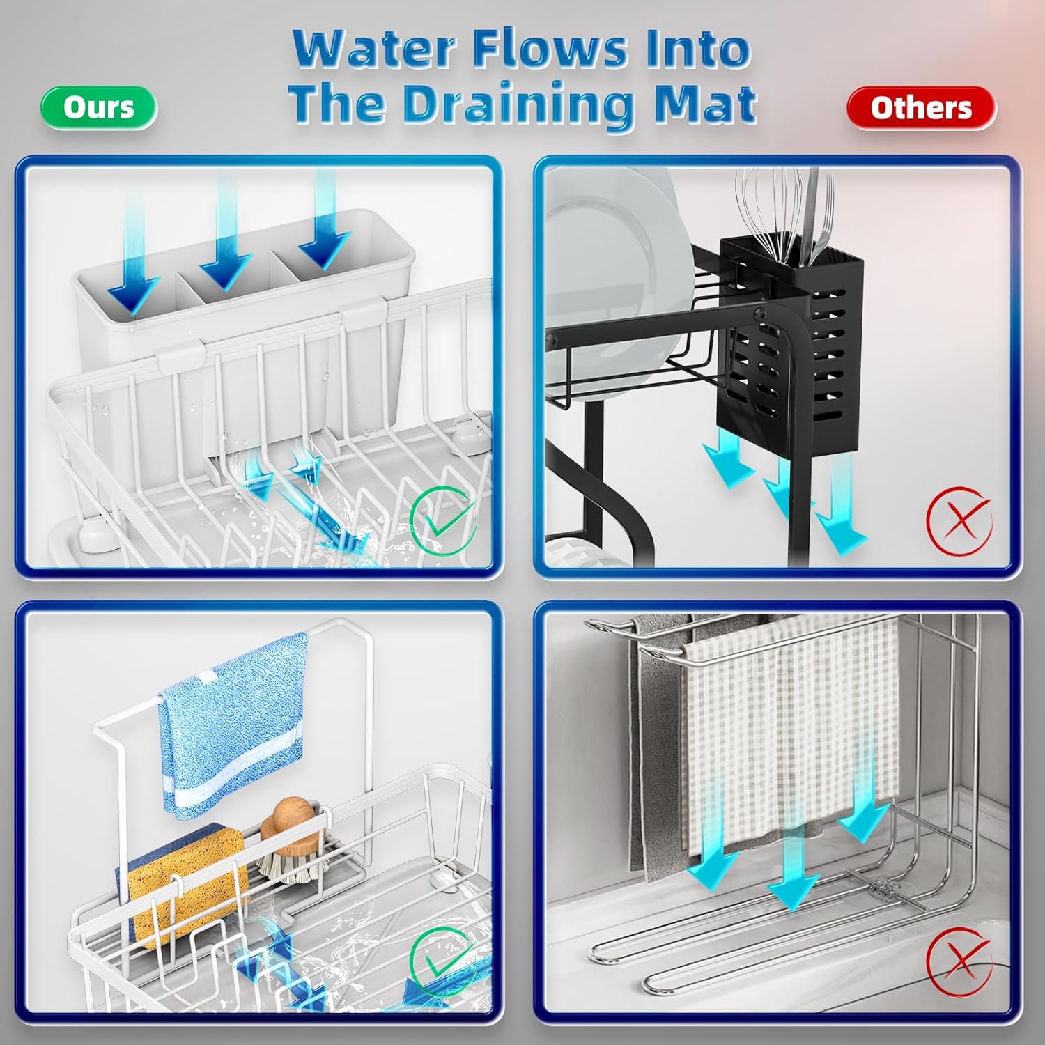 - HIGH-QUALITY MATERIAL: GAOKASE dish drying rack is made of high-quality metal, and the surface is covered with anti-rust coating, which can prevent the dish drying rack from rusting and deformation, and is very suitable for long-term use in small kitchens. Make your kitchen work easier.The cutlery rack is designed to save 40% of your storage space.