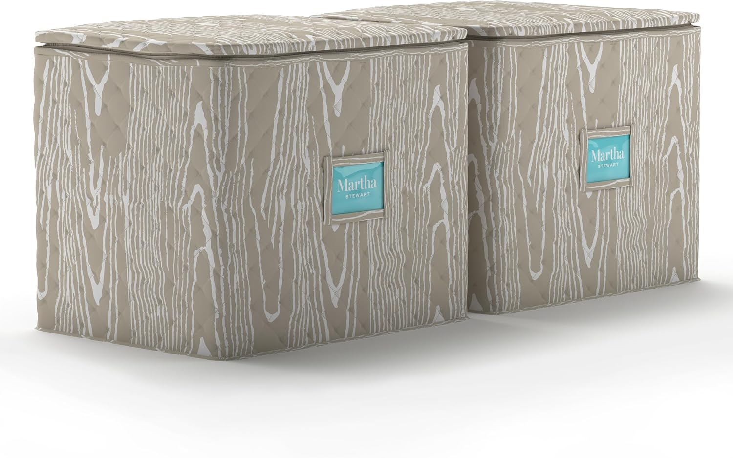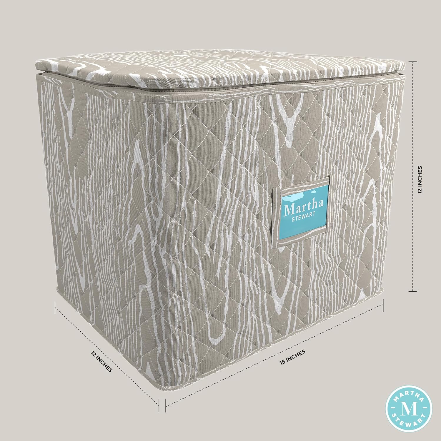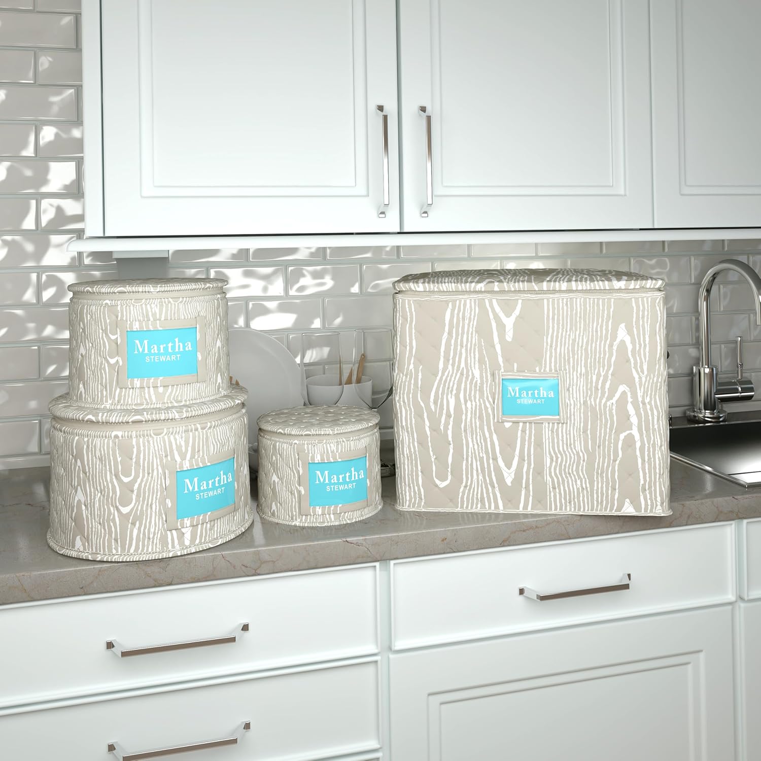 Martha Stewart Dinnerware Stemware Glassware Stackable Organizer Home Storage Container Case, Set of 2 Goblet Stemware Storage Organizers With Removable Fabric Dividers, Skyland Faux Bois