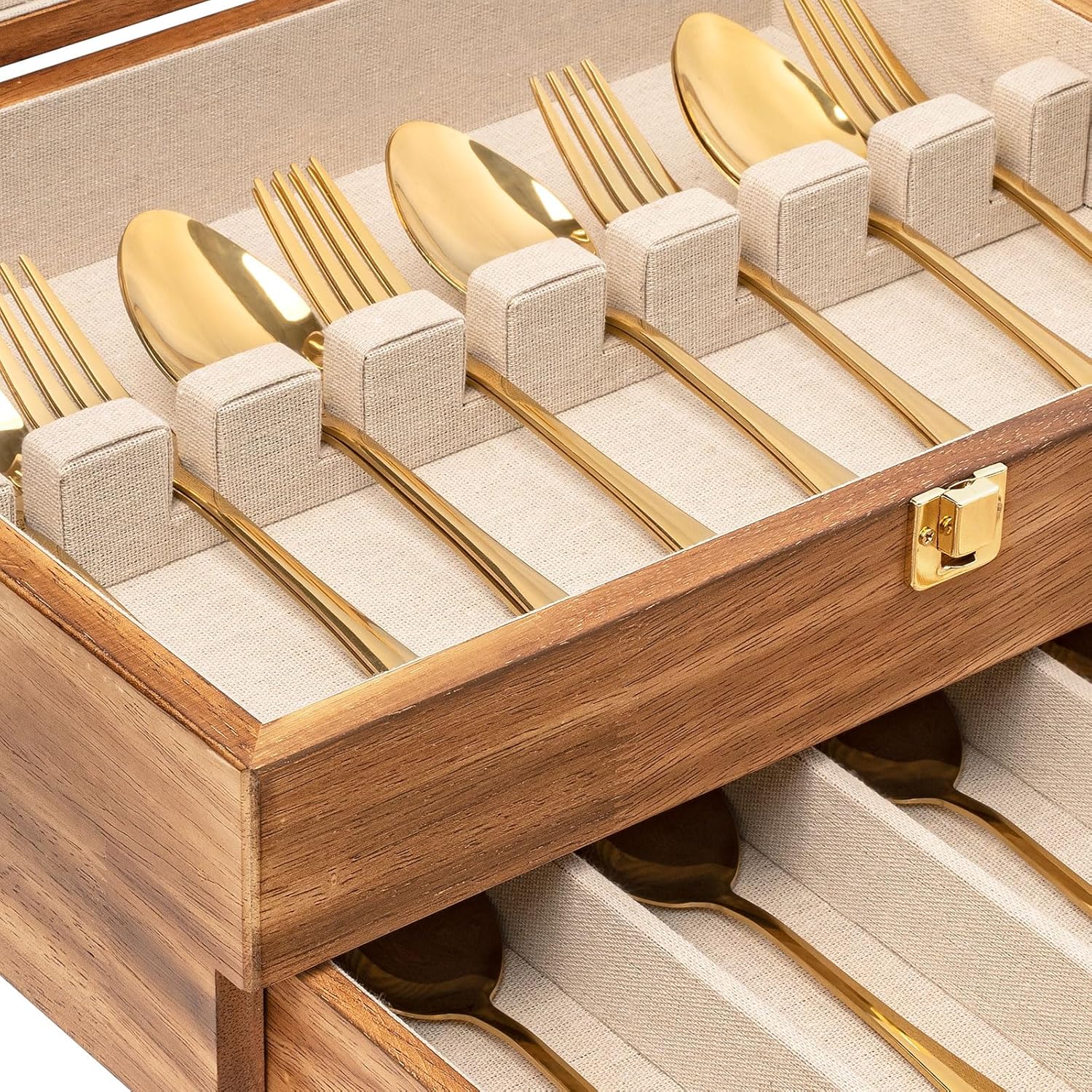 - Home Decorative Silverware Storage: Enhance your home's aesthetic with this wood silverware flatware storage box, displaying it in a cabinet or display case to add a touch of sophistication, resembling a piece of art.
