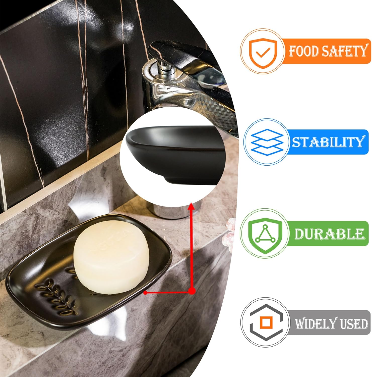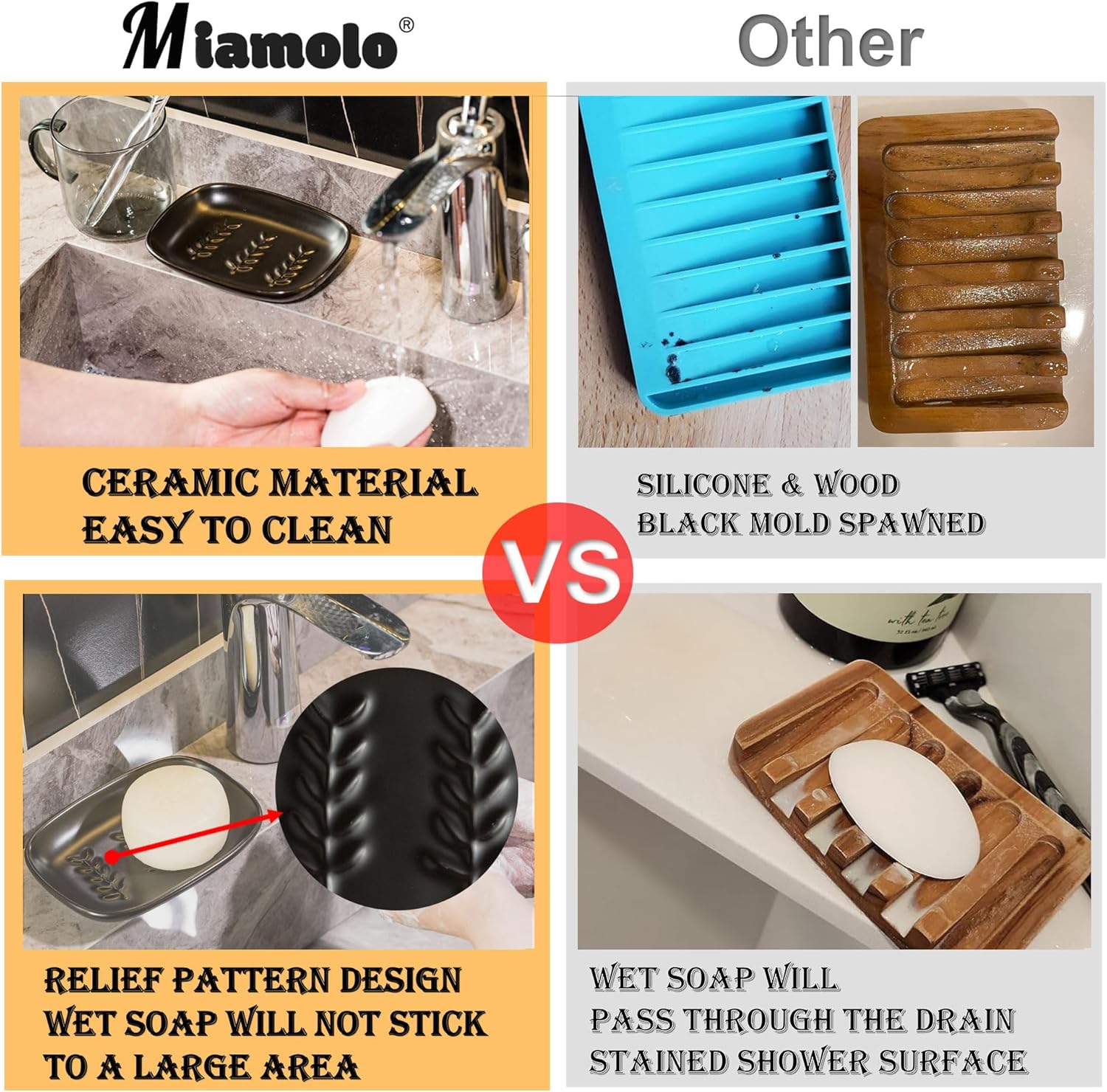 - PREMIUM QUALITY MATERIAL: Miamolo Soap Dish is made of high quality ceramic material, durable and non-slip, ensuring that the soap is securely placed and will not slip off. It stays stable even in humid environments