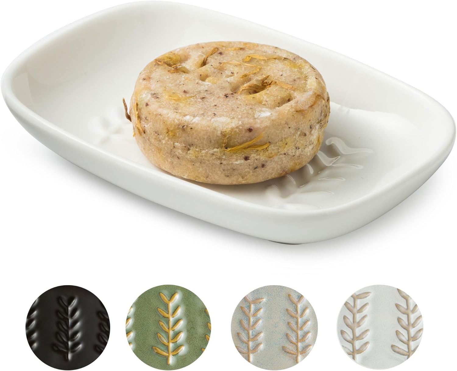 - PREMIUM QUALITY MATERIAL: Miamolo Soap Dish is made of high quality ceramic material, durable and non-slip, ensuring that the soap is securely placed and will not slip off. It stays stable even in humid environments