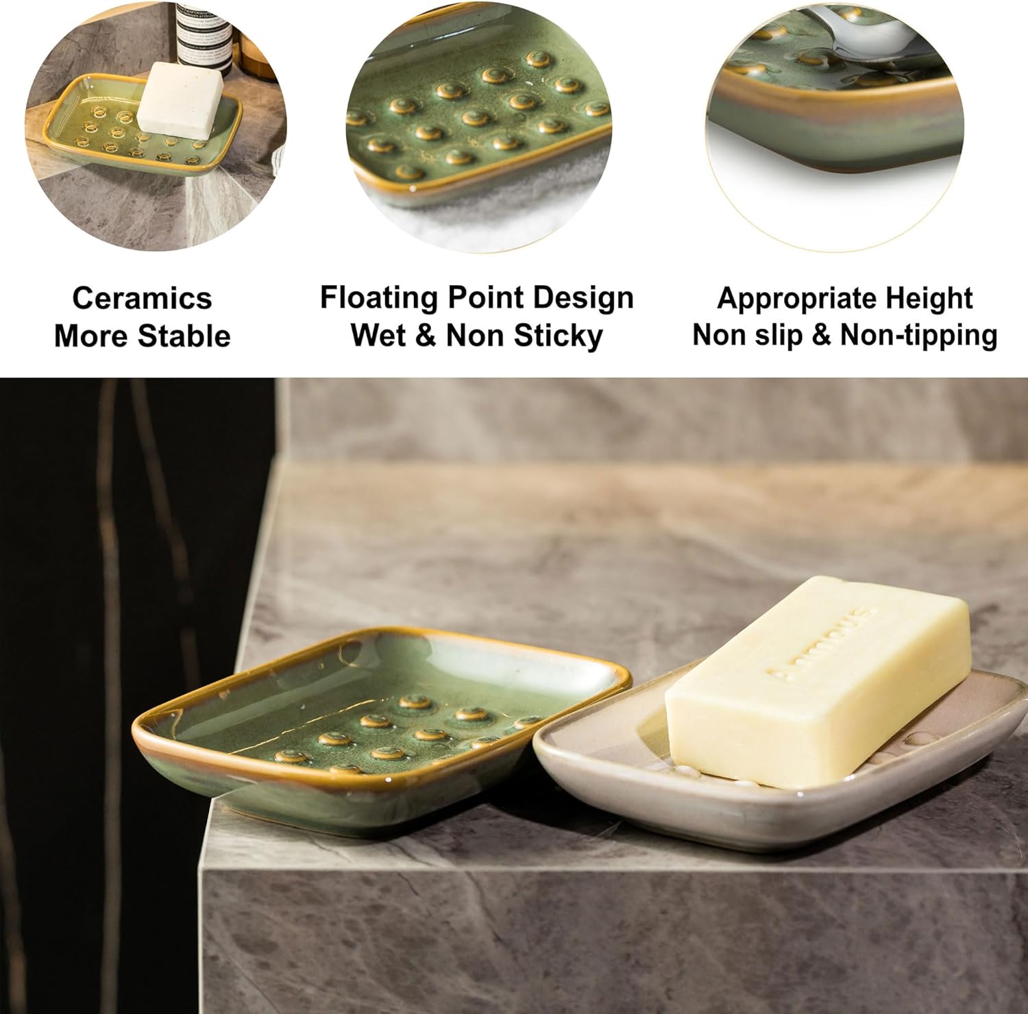Soap Dish for Shower, Ceramic Soap Dish Non-Slip Soap Holder Bar Saver Tray for Bathroom Kitchen Sink, Floating Point Design Save Soap Loss