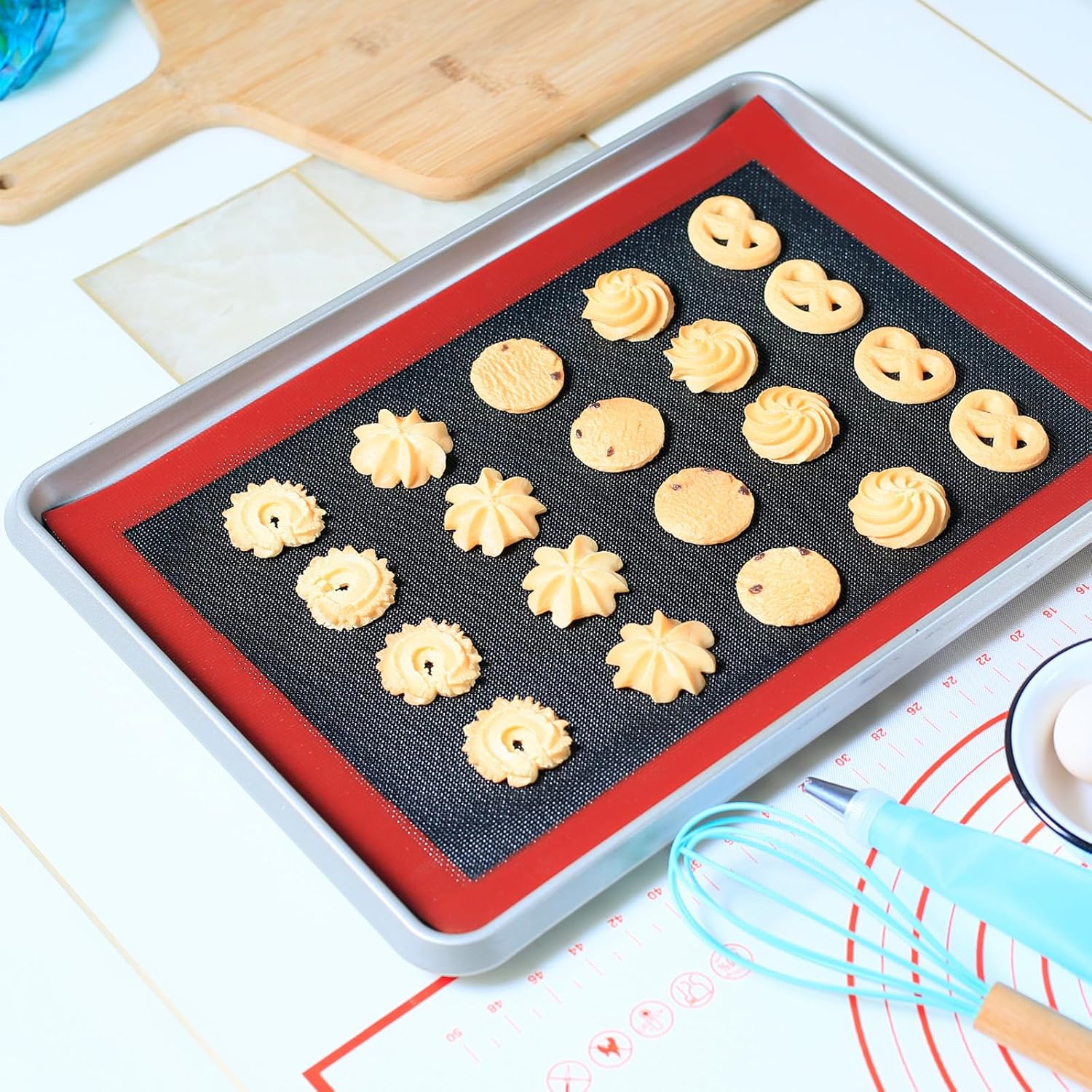 - ✅ 【PREMIUM BAKING MATS, MULTI-FUNCTIONAL USE】From cookies to bread, pizza to éclairs, these mats are incredibly versatile, making them a valuable addition to any baker's toolkit. Their heat resistance and large surface area (half baking sheet) offer flexibility for preparing a wide range of baked goods, while the non-cuttable design ensures lasting durability and consistent results.
