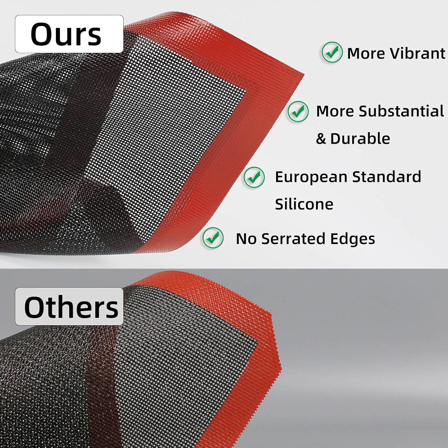 - ✅ 【SILICONE AIR MESH MAT, OPTIMIZED FOR EVEN HEAT DISTRIBUTION】These mats are made from high-quality silicone and glass fiber that promote even heat distribution, ensuring your baked creations come out perfectly golden every time. No more undercooked centers or burnt edges. With the added benefit of micro-perforation, airflow circulates effectively, ensuring crispy textures and consistent results, every time.