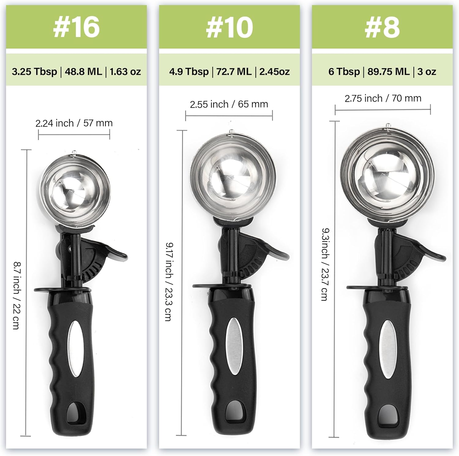 Ice Cream Scoop Set, Cookie Scoop set of 3, 3.25 Tbsp/ 4.9 Tbsp / 6 Tbsp Ice Cream Spoon with Trigger, Cookie Dough Scoop, Portion Scoop 1.63 oz, 2.45 oz, 3oz