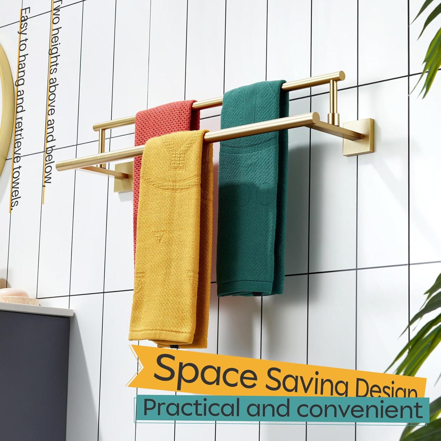 KOKOSIRI 24-Inch Towel Bars Double Bath Towel Rails Bathroom Holder Racks for Cabinet Kitchen Brushed Gold Stainless Steel B5009BG-L24