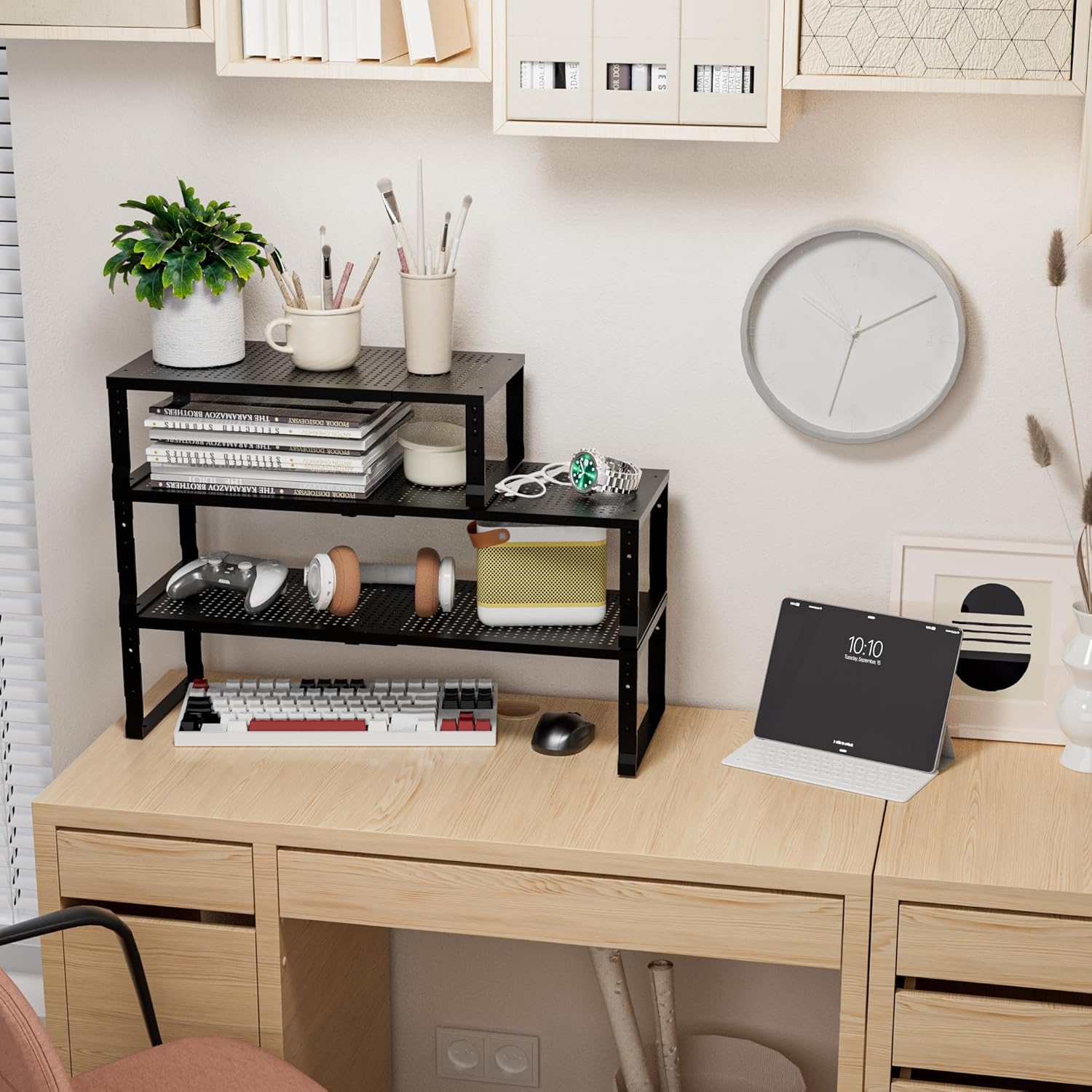 Expandable,Adjustable & Stackable Spice Rack, Cabinet Kitchen Countertop Shelf Organizer,Metal Pantry Storage Shelves - Space-Saving Storage Solution(1Pack/Black/Medium)