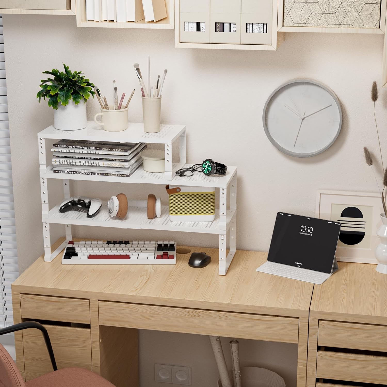 Expandable,Adjustable & Stackable Spice Rack, Cabinet Kitchen Countertop Shelf Organizer,Metal Pantry Storage Shelves - Space-Saving Storage Solution(1Pack/White/Medium)