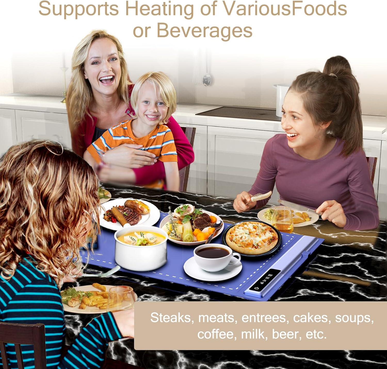 - Efficient & Full-area Heating: Large heating area, fast and even heating. Allowing you to flexibly place tableware as needed while keeping food at the perfect temperature.