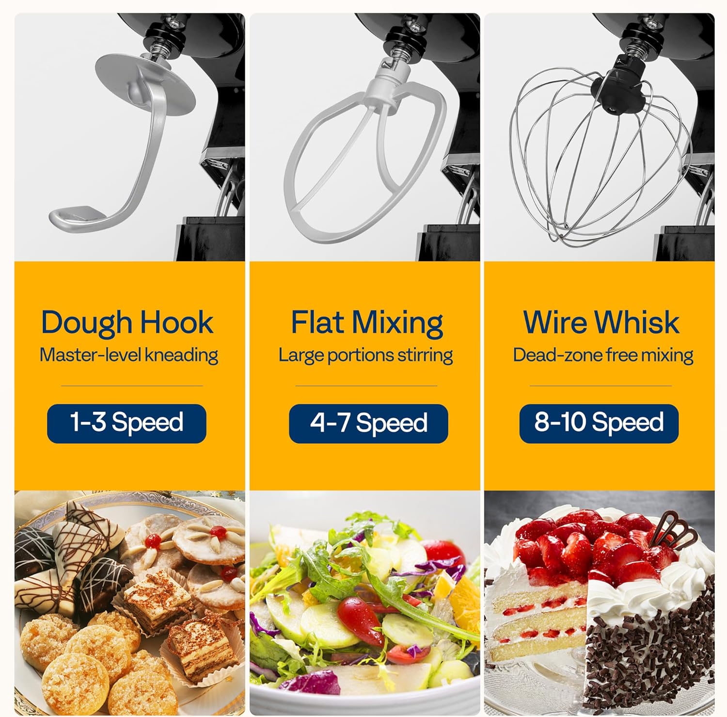 - USER-FRIENDLY AND SAFE: The VIVOHOME stand mixer features a tilt-head design, making it easy to install and detach the bowl and attachments; The power automatically stops when tilted up, and the overheat protection ensures safe use; Additionally, a transparent, splash-proof cover allows for secure ingredient additions and easy status checks of the mixer