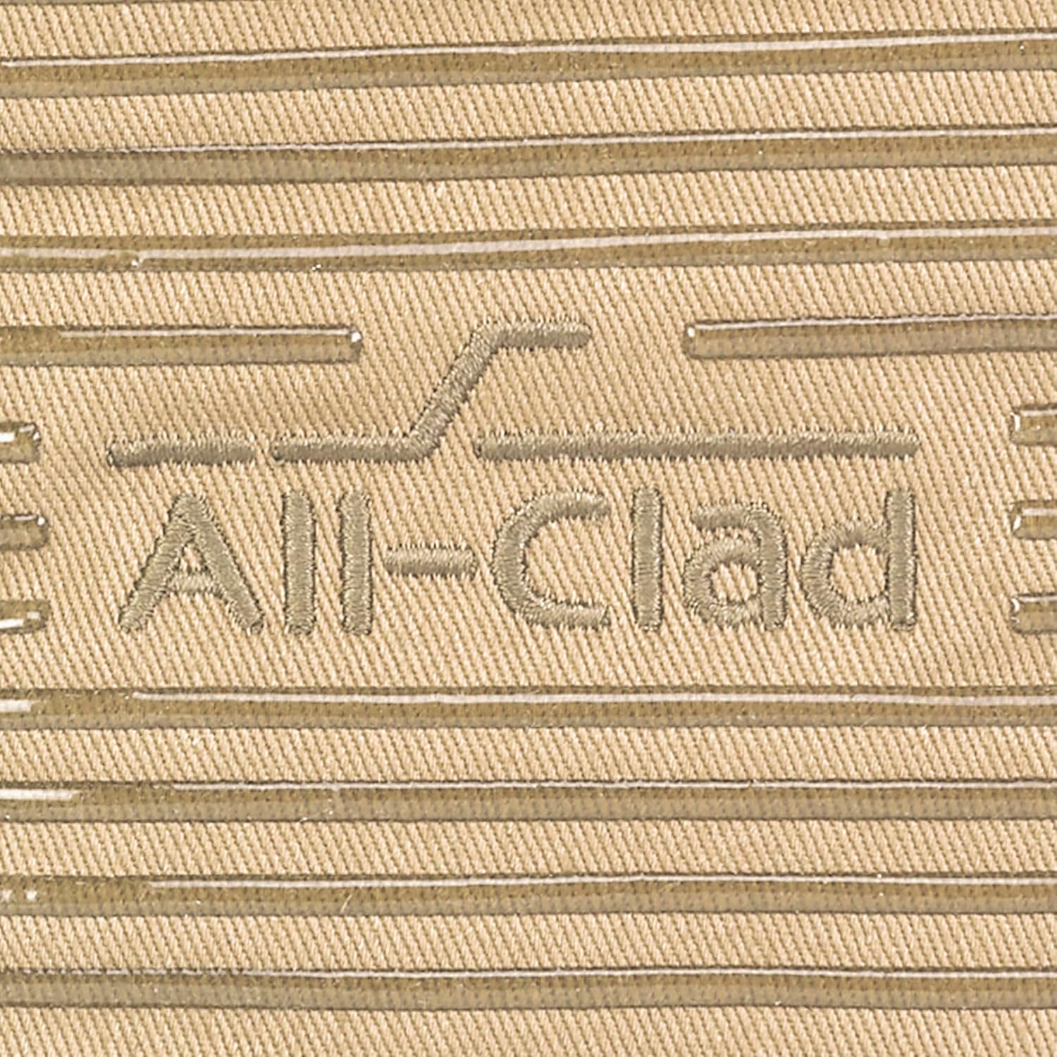 - EASY TO CARE FOR. Designed with heavyweight, stain-resistant twill, All-Clad silicone oven mitts and pot holders are entirely machine washable. Machine wash cold with like colors on gentle cycle, only non-chlorine bleach when needed and lay flat to dry. Fabric is stain resistant.