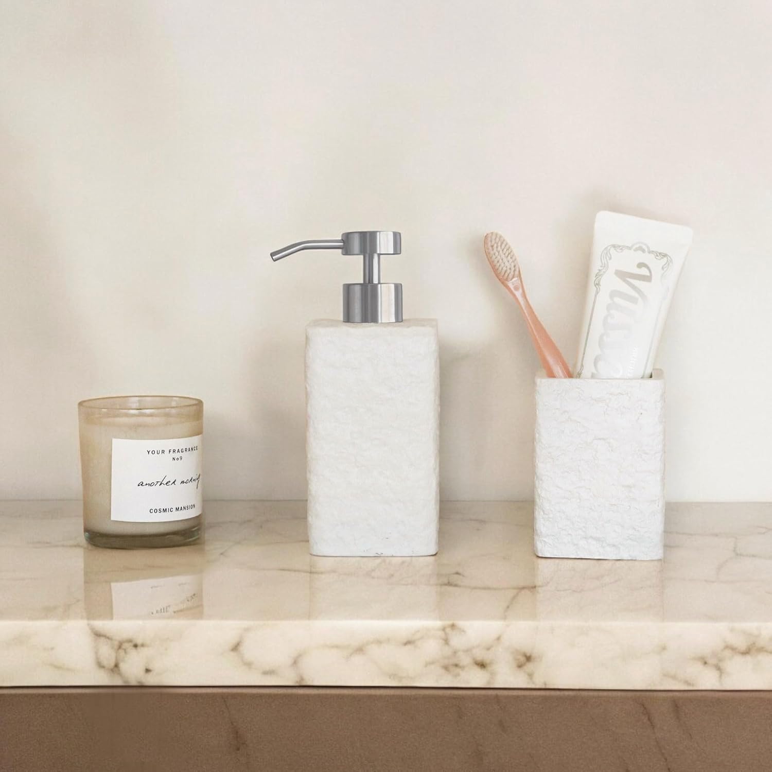 - UNIQUE STONE TEXTURE: Enjoy the satisfying feel of a chiseled, matte stone finish. It adds a sophisticated, spa-like accent that ordinary dispensers can't match.