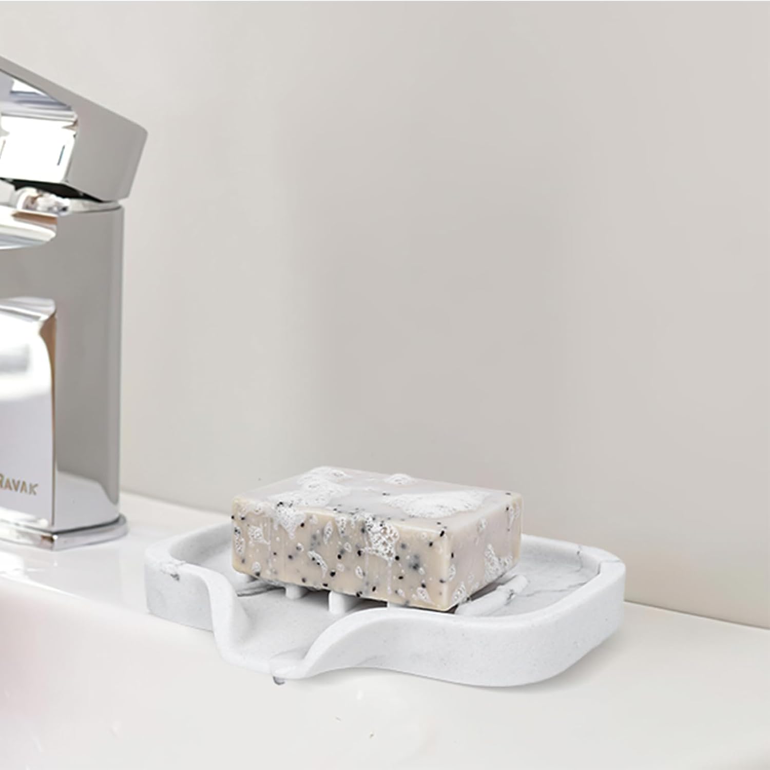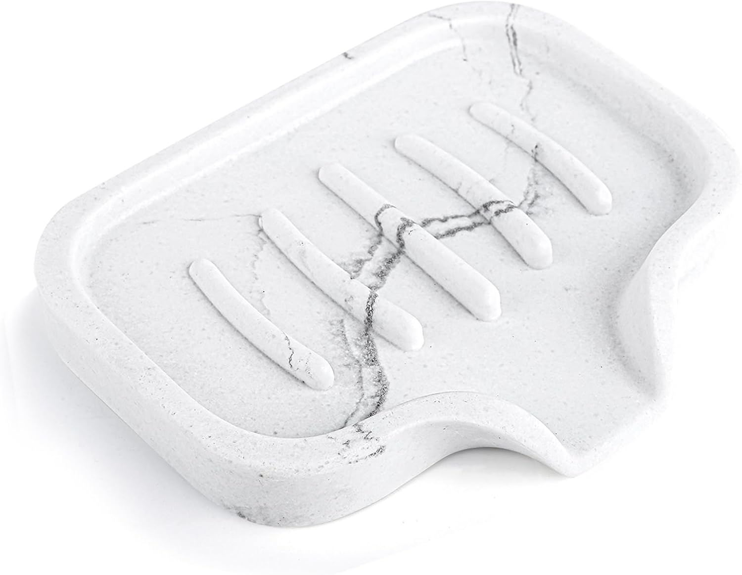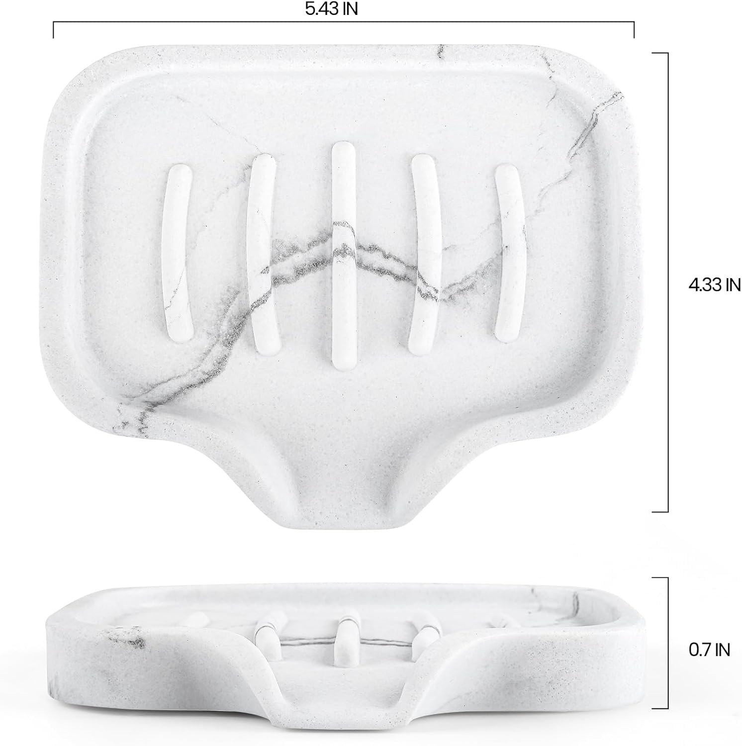 Self Draining Soap Dish- Bar Soap Holder for Shower, Marble Design Large Soap Savers Soap Tray Sponge Holder for Kitchen Bathroom Bathtub Sink, White