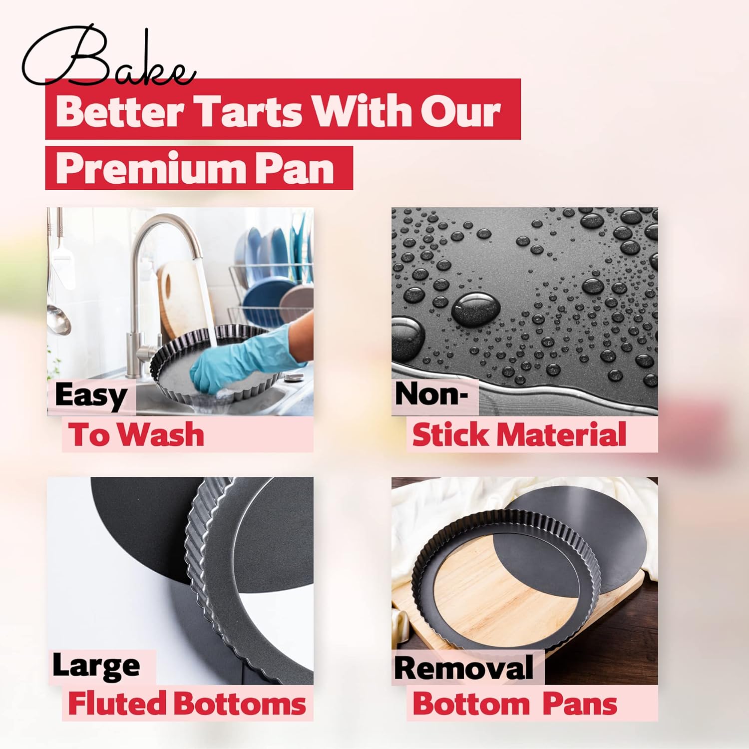 - ❖ Enjoy Secure Baking: Keep your kitchen safe with our food-grade tart pans. Our non-stick tart mold is free from PFOA, BPA, and PTFE. The edges of the pan are not sharp, and it is polished with special care to protect your fingers while handling it