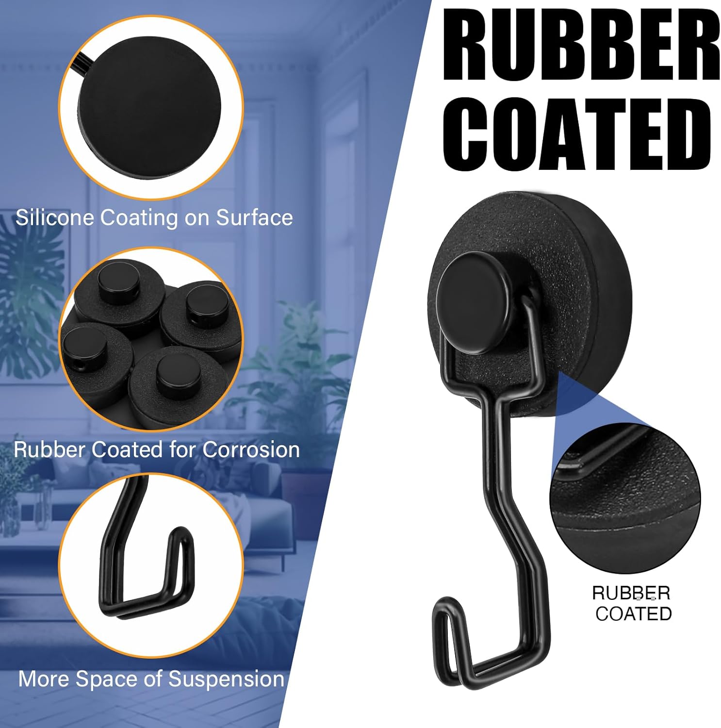 - 【Strong magnetic】These rubber-coated magnetic hooks have a NdFeb core and superior magnetism.